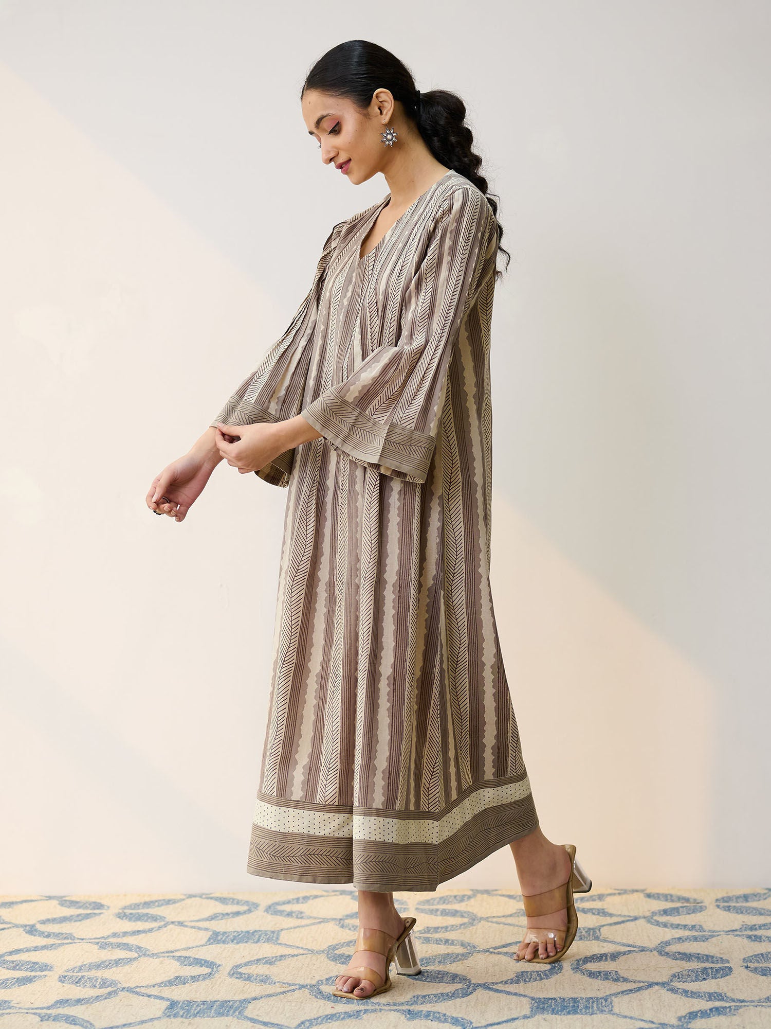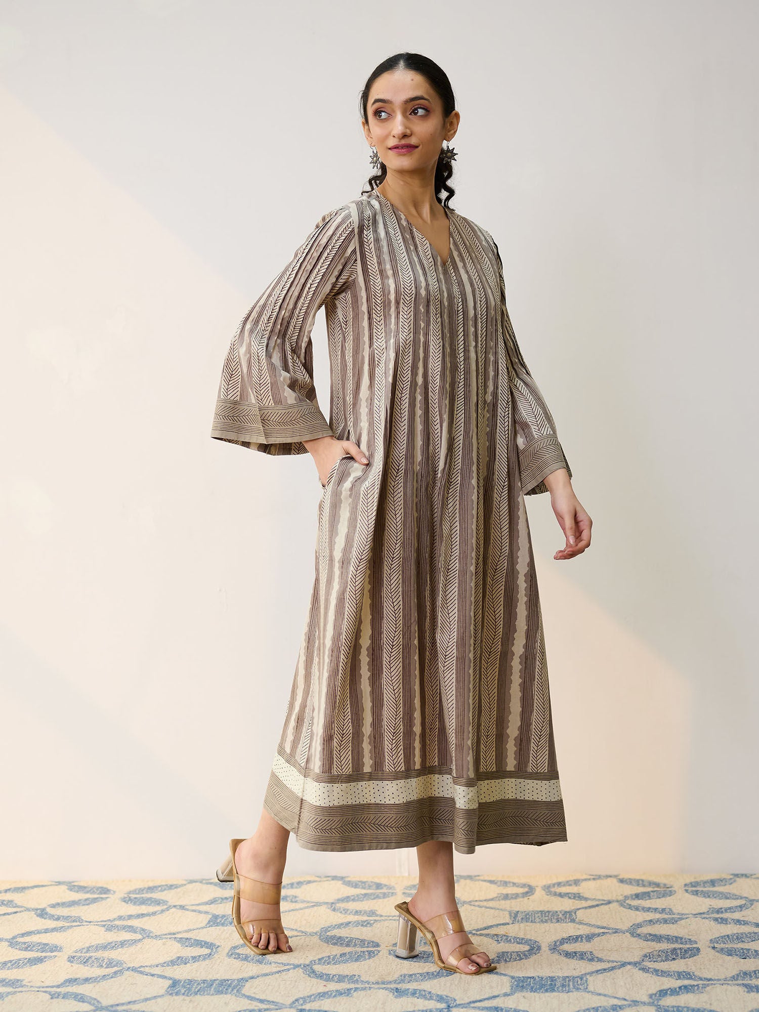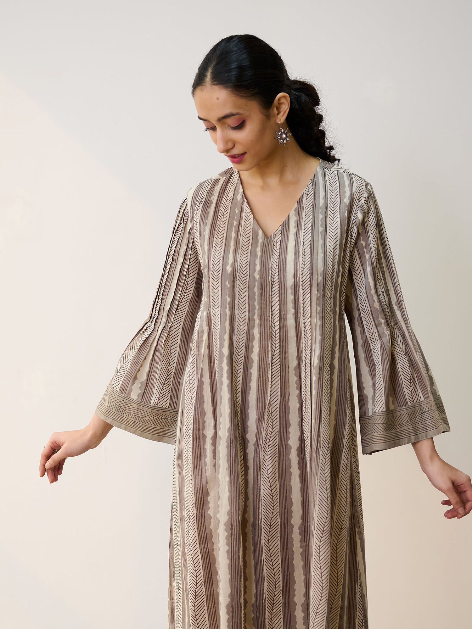 Dabu Grey Cotton A-Line Dress with Pintuck Detail