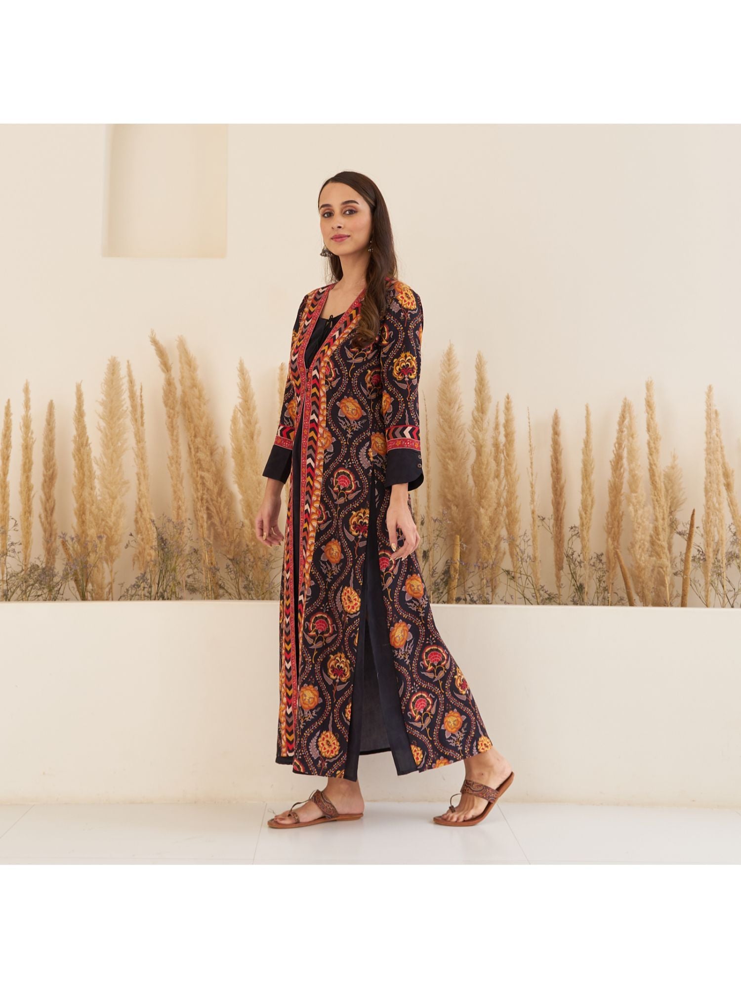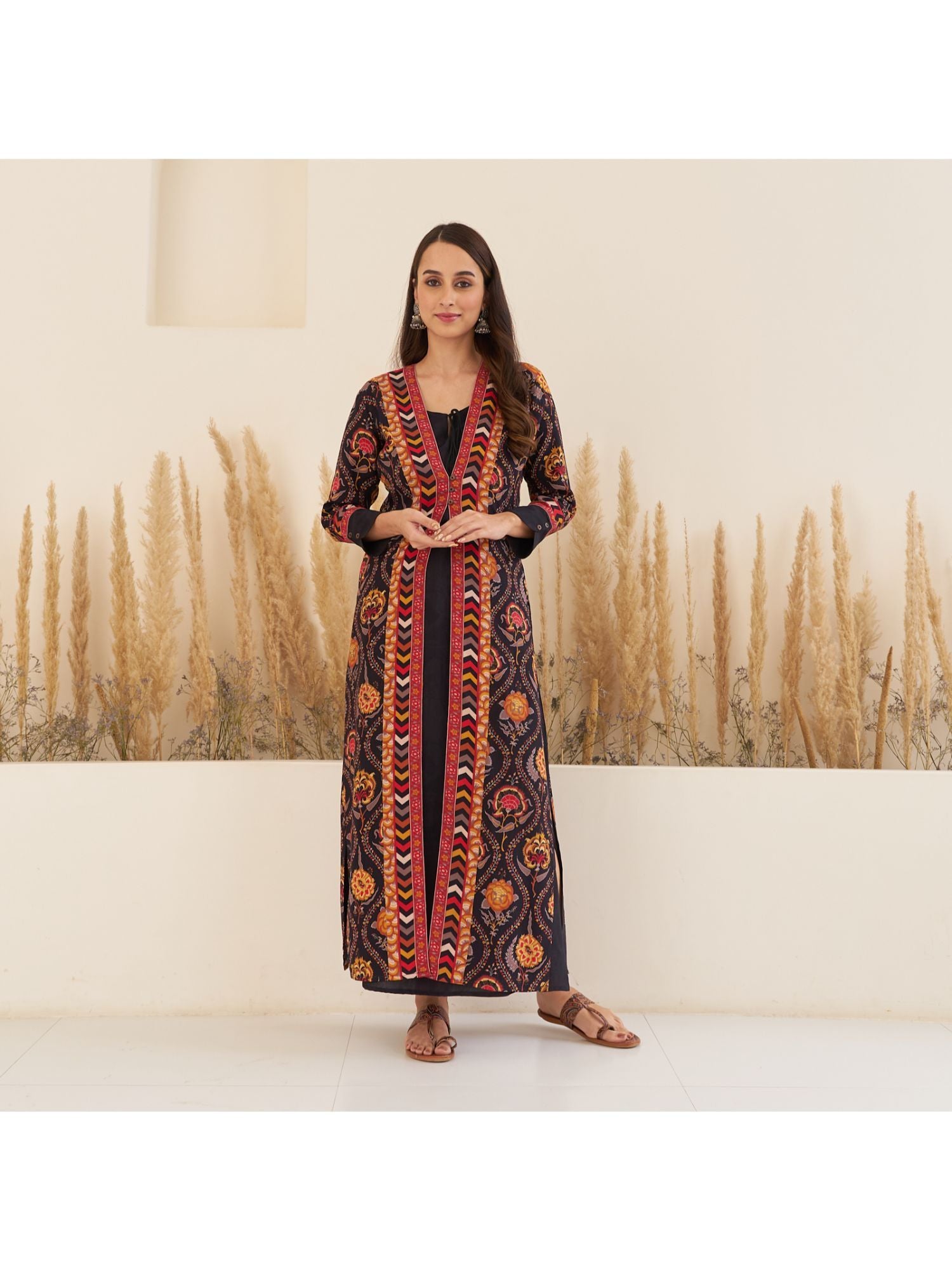 Black Side Slit Dress With Long Shrug (Set of 2)
