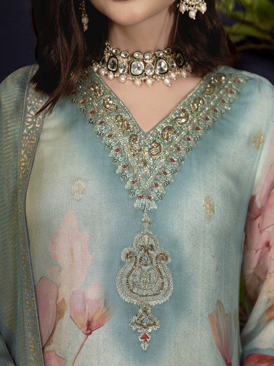 Anouk Women Floral Printed Regular Kurta with Trousers & With Dupatta