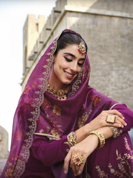 AUTUMN LANE Women Ethnic Motifs Embroidered Sequinned Cotton Kurta Set With Dupatta