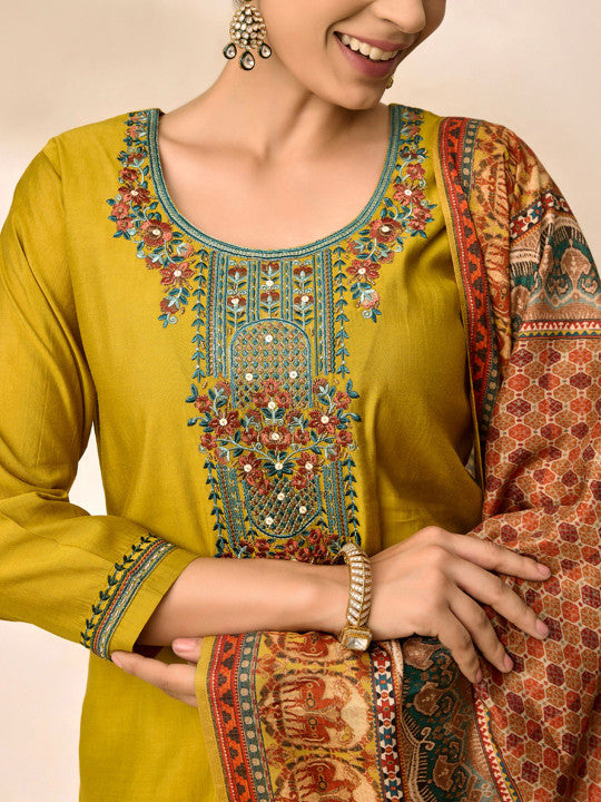 WOMEN PLUS Women Ethnic Motifs Embroidered Thread Work Kurta with Trousers & Dupatta