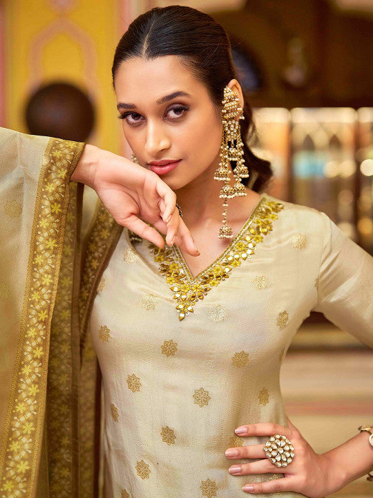 House of Pataudi Women Ethnic Motifs Woven Mirror Work Ombre Kurta with Trousers & Dupatta