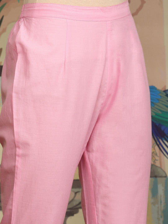 Ishin Floral Embroidered Sequinned Pure Cotton Straight Kurta With Trousers & Dupatta