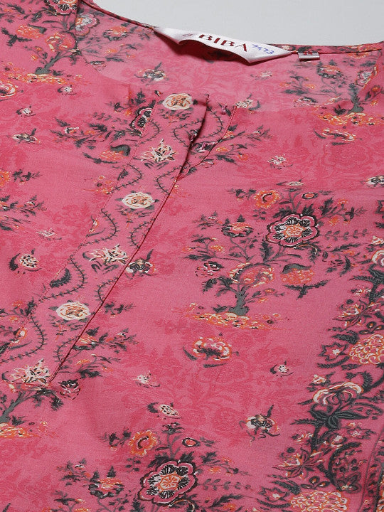 Biba Women Floral Embroidered Regular Pure Cotton Kurta with Trousers & With Dupatta