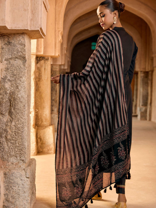 WOMEN PLUS Women Floral Yoke Design Regular Thread Work Liva Kurta with Trousers & Dupatta