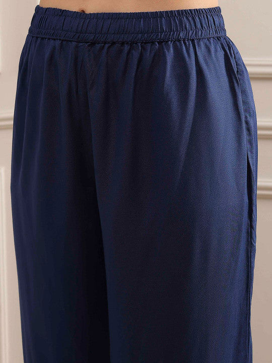 Biba Ethnic Motifs Printed Notch Neck Straight Kurta With Palazzos & Dupatta