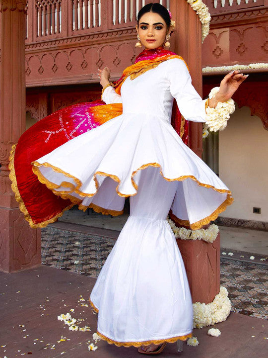 Calmna Women Thread Work Kurta with Sharara & With Dupatta