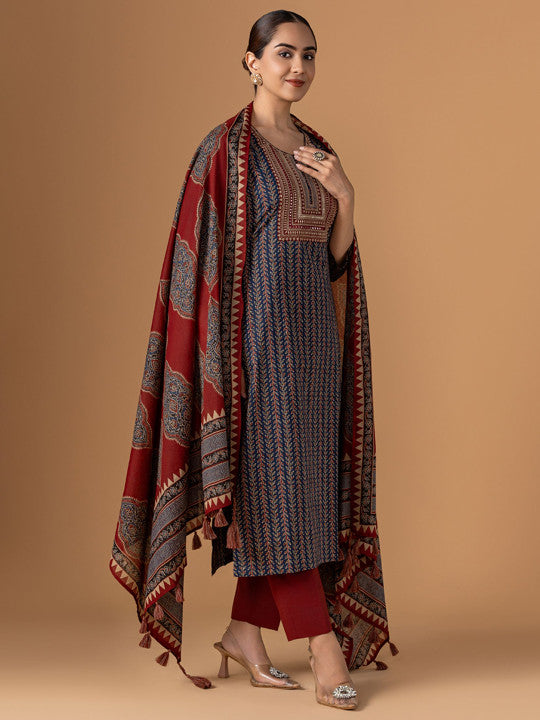 WOMEN PLUS Women Embroidered Pure Cotton Suit Set