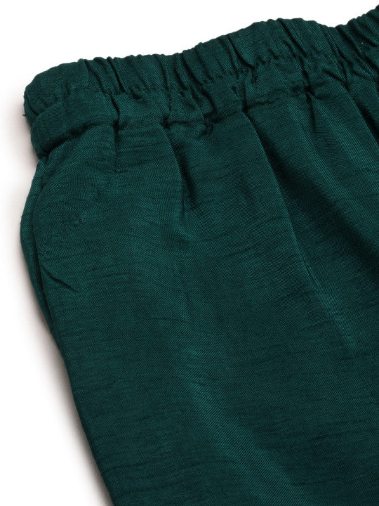 swatika Women Green & Golden Ethnic Yoke Design Zardozi Kurta with Trousers & Dupatta