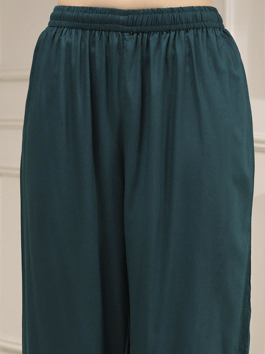 Biba Women Striped Thread Work Straight Kurta with Palazzos & Dupatta