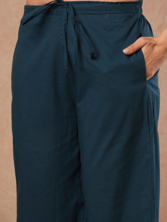 FASHOR Women Floral Embroidered Pleated Pure Cotton Kurta with Palazzos & With Dupatta