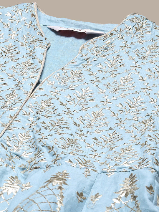 Biba Ethnic Motifs Embroidered High Slit Kurta With Palazzos & Dupatta