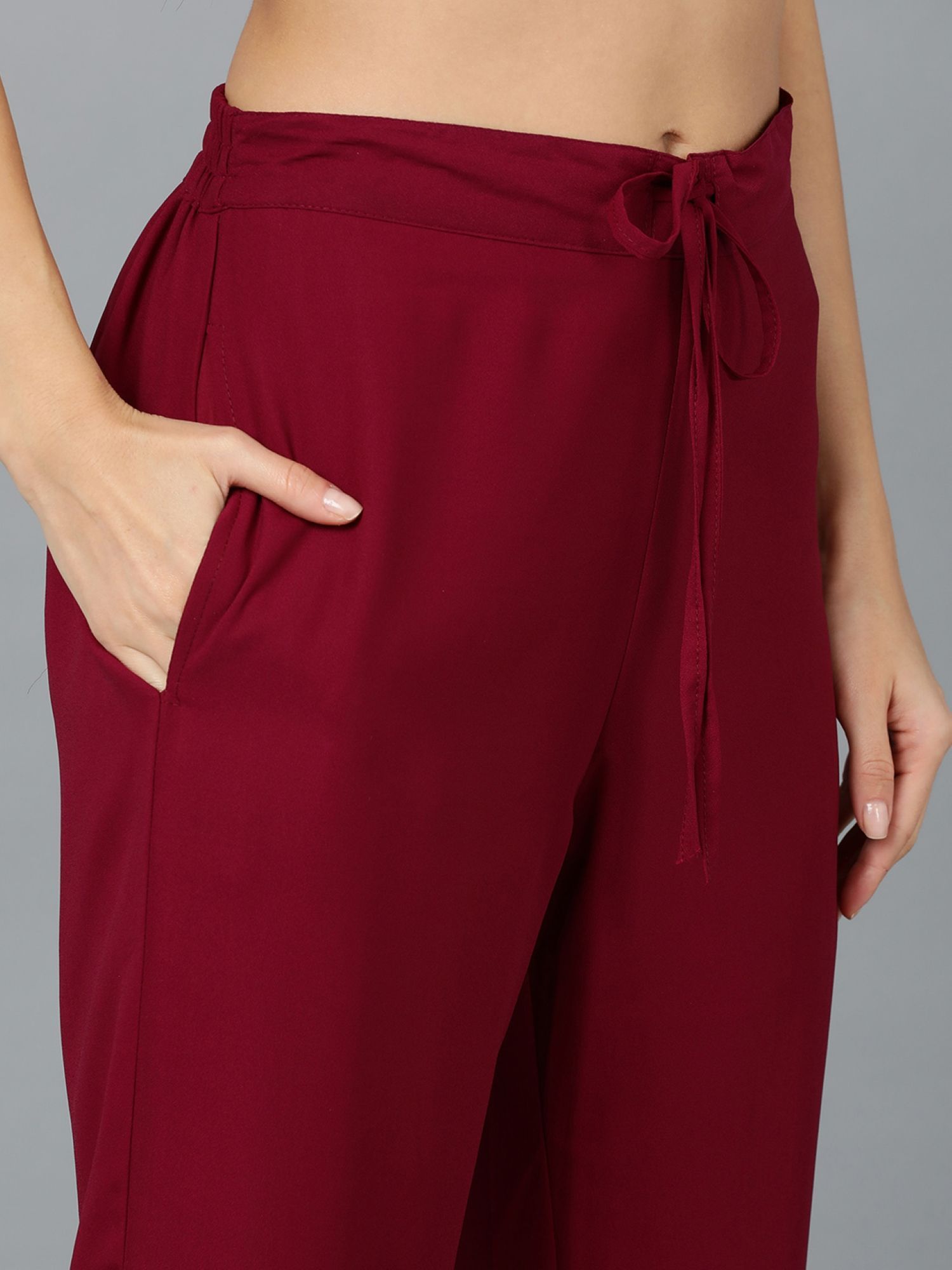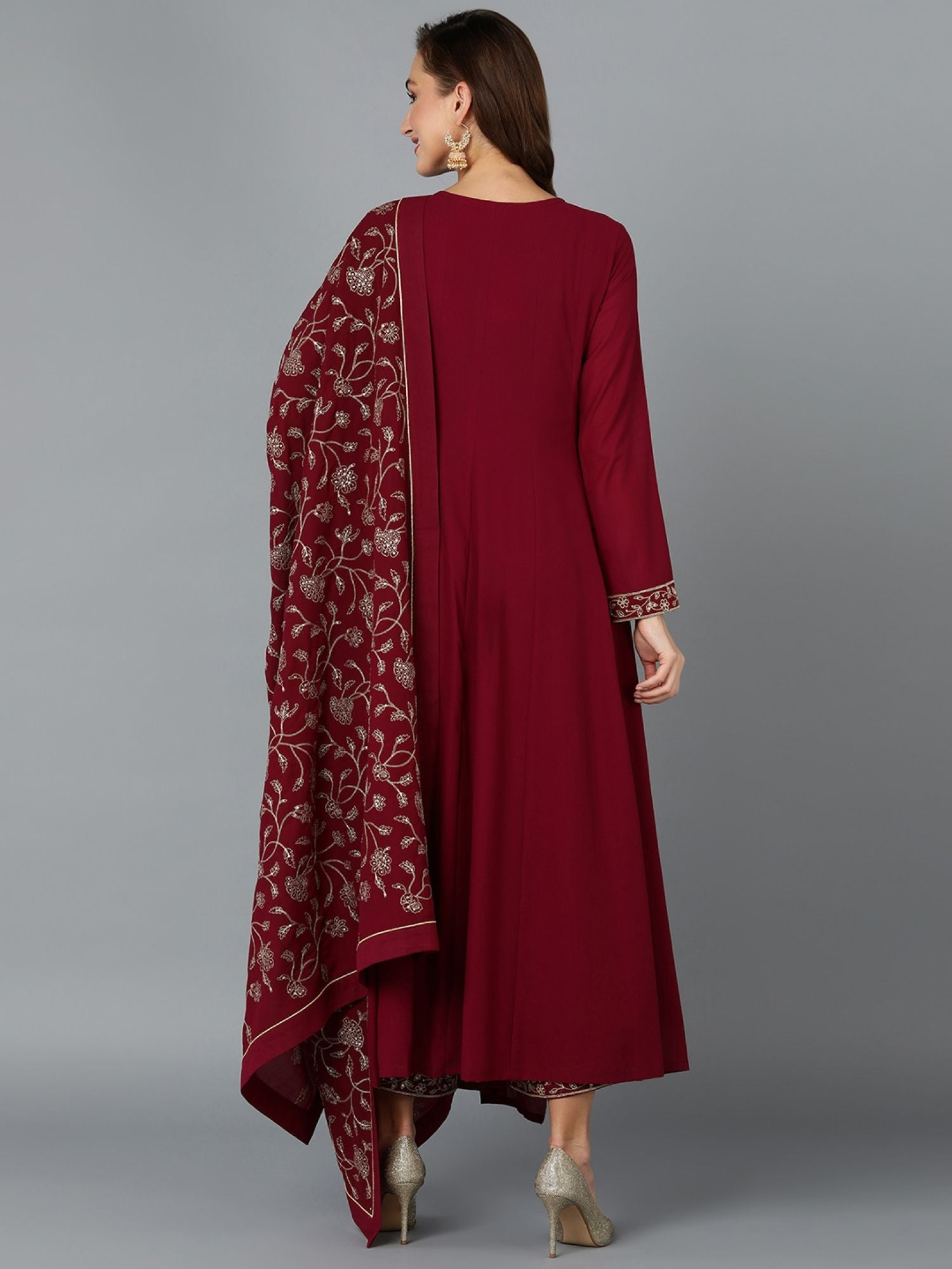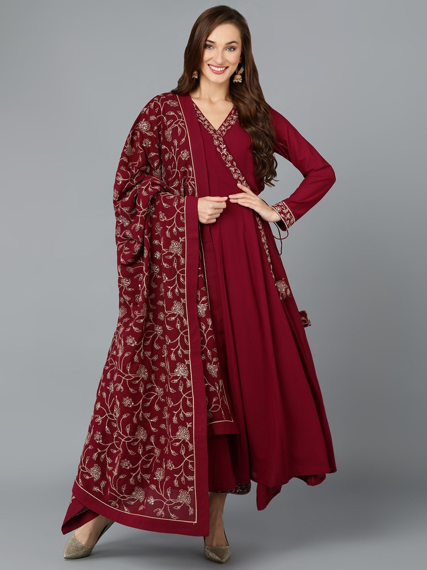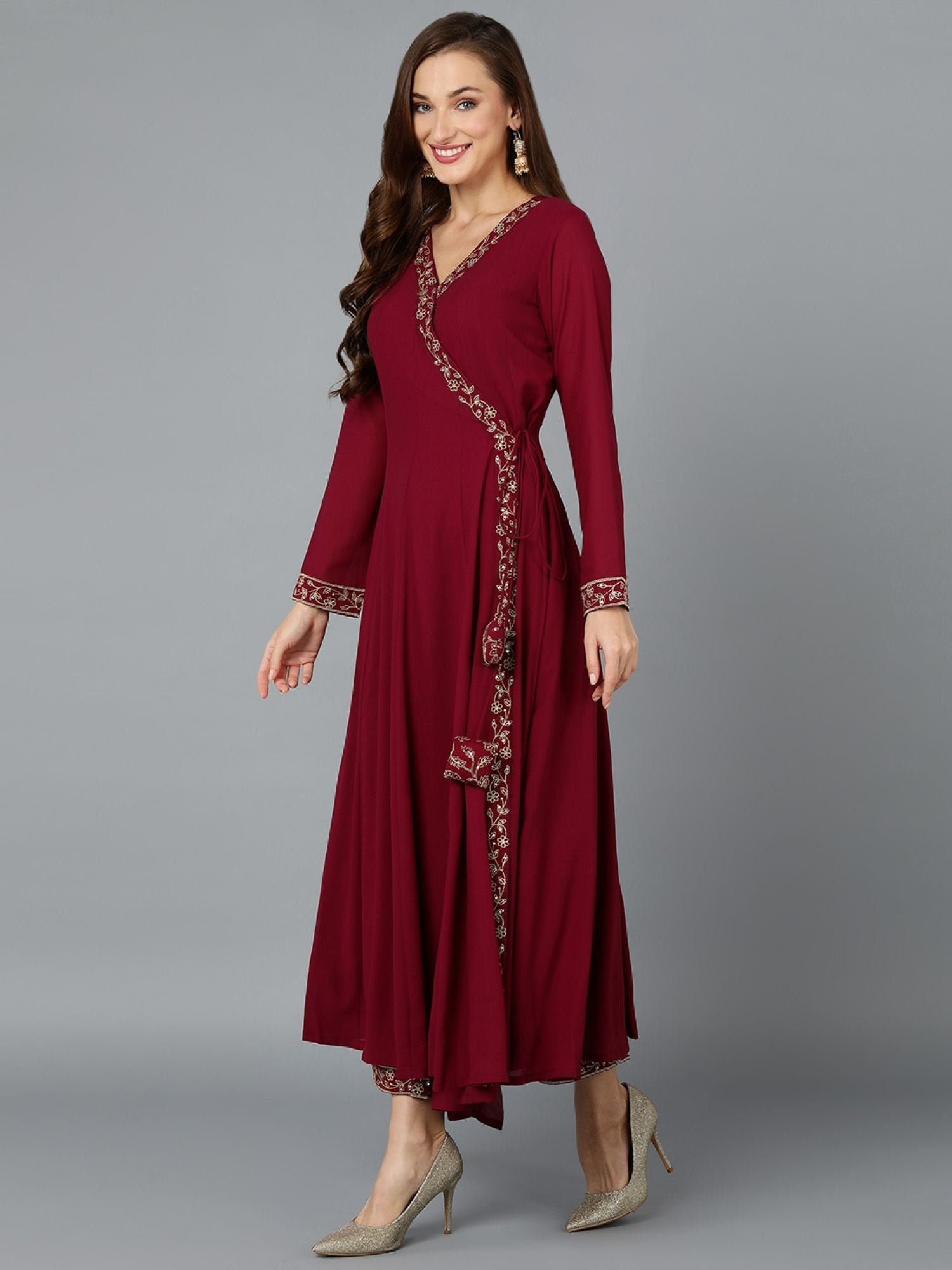Women Maroon Georgette Angrakha Kurta Pants with Dupatta (Set of 3)