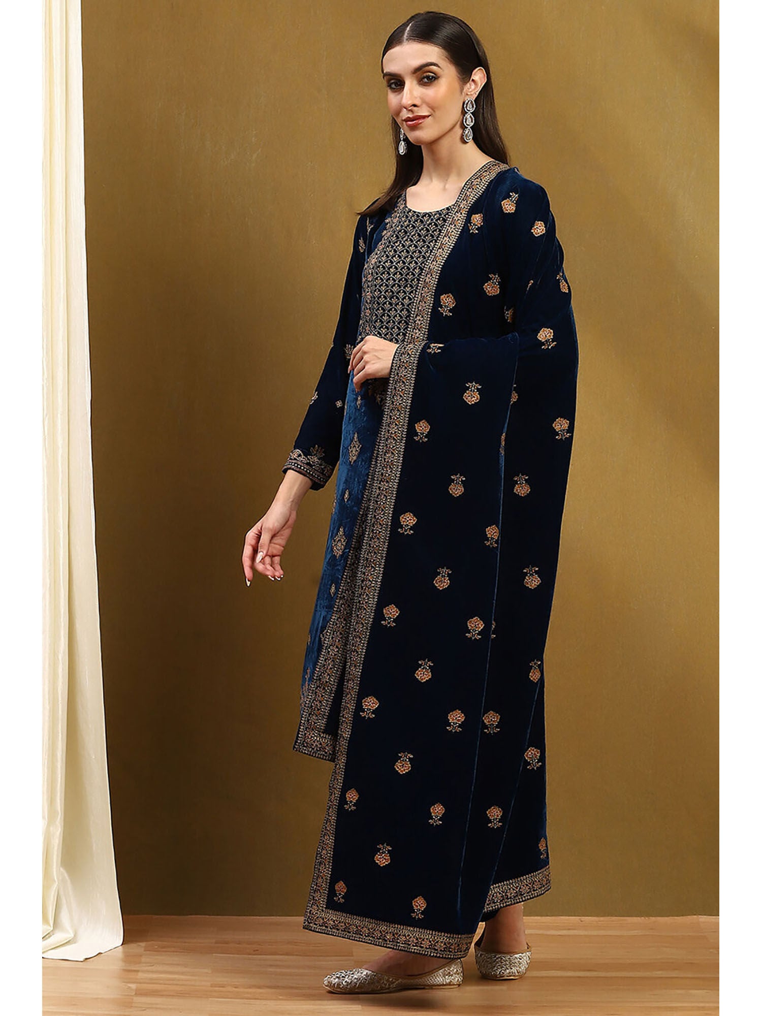 Blue Floral Kurta with Palazzo and Dupatta (Set of 3)