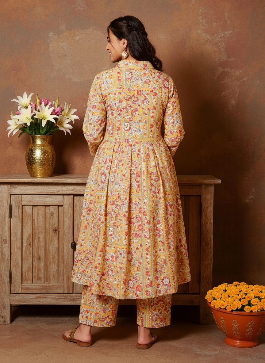 Soft Cotton Patchwork High Low Green Kurta