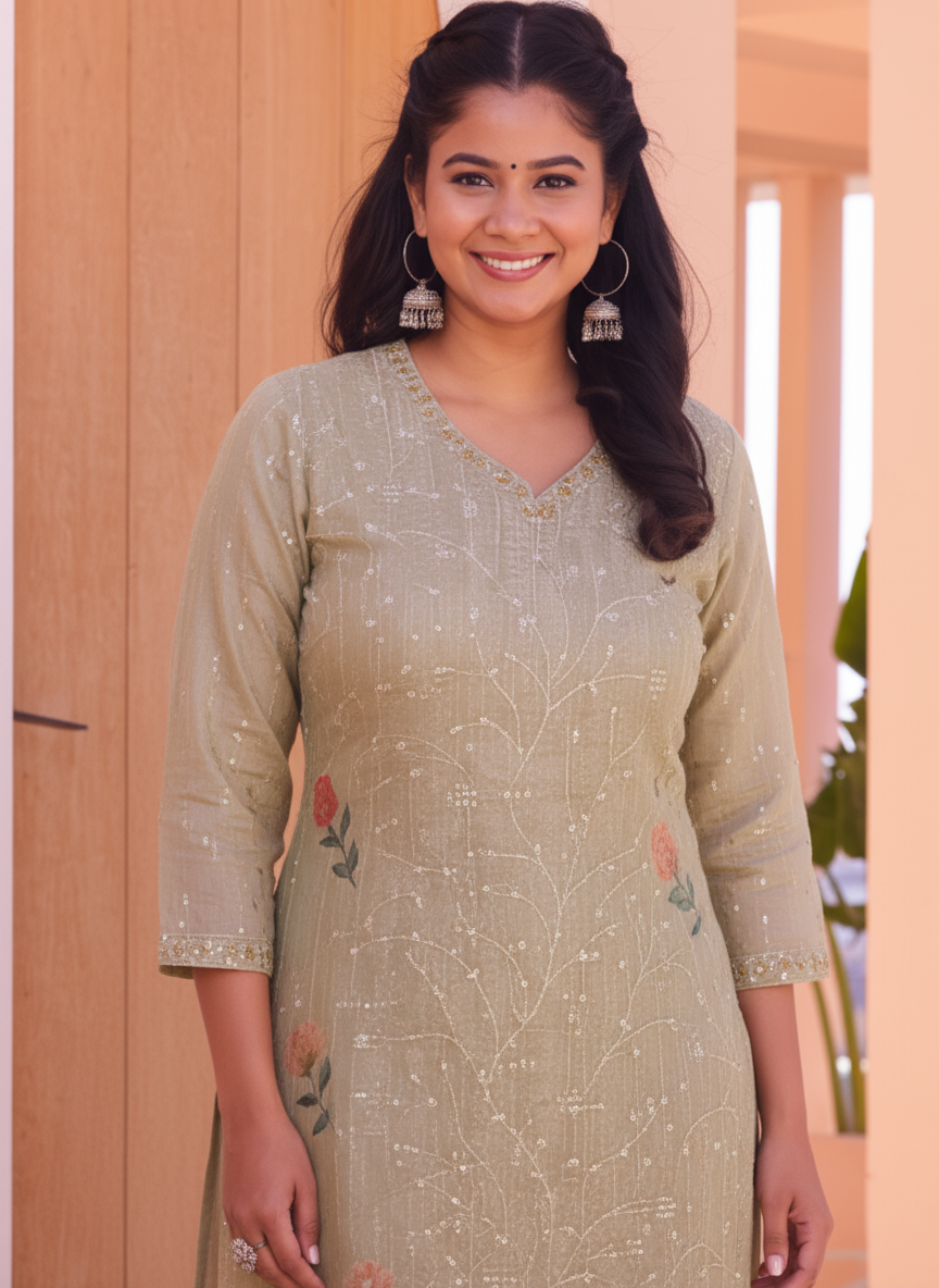 Embroidered Cotton SIlk A-line Kurta