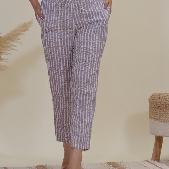 These Beige trouser crafted from breathable Soft Cotton combine comfort and style. The Striped pattern adds a modern twist, while pockets make them practical for daily wear. Ideal for casual outings or workdays, they pair effortlessly with kurtas, tops, or tunics. Keep them looking fresh with minimal care and enjoy their all-day ease.