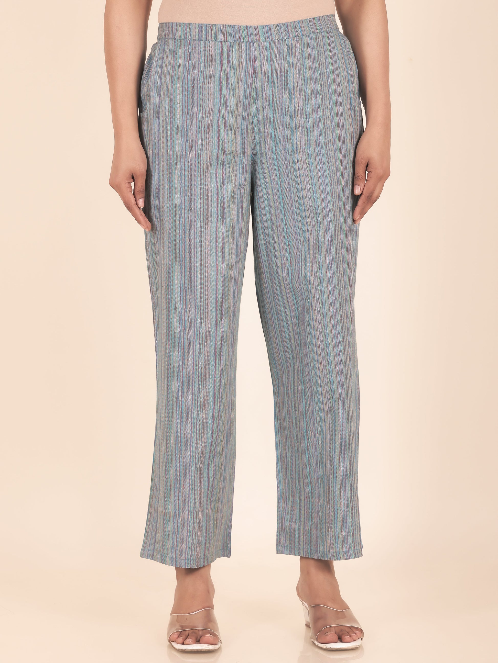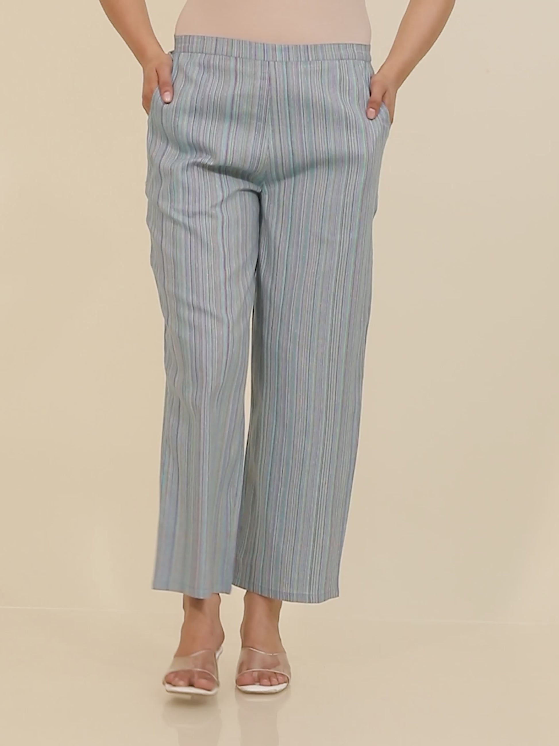 These Multicolor trouser crafted from breathable Blend Cotton combine comfort and style. The Striped pattern adds a modern twist, while pockets make them practical for daily wear. Ideal for casual outings or workdays, they pair effortlessly with kurtas, tops, or tunics. Keep them looking fresh with minimal care and enjoy their all-day ease.