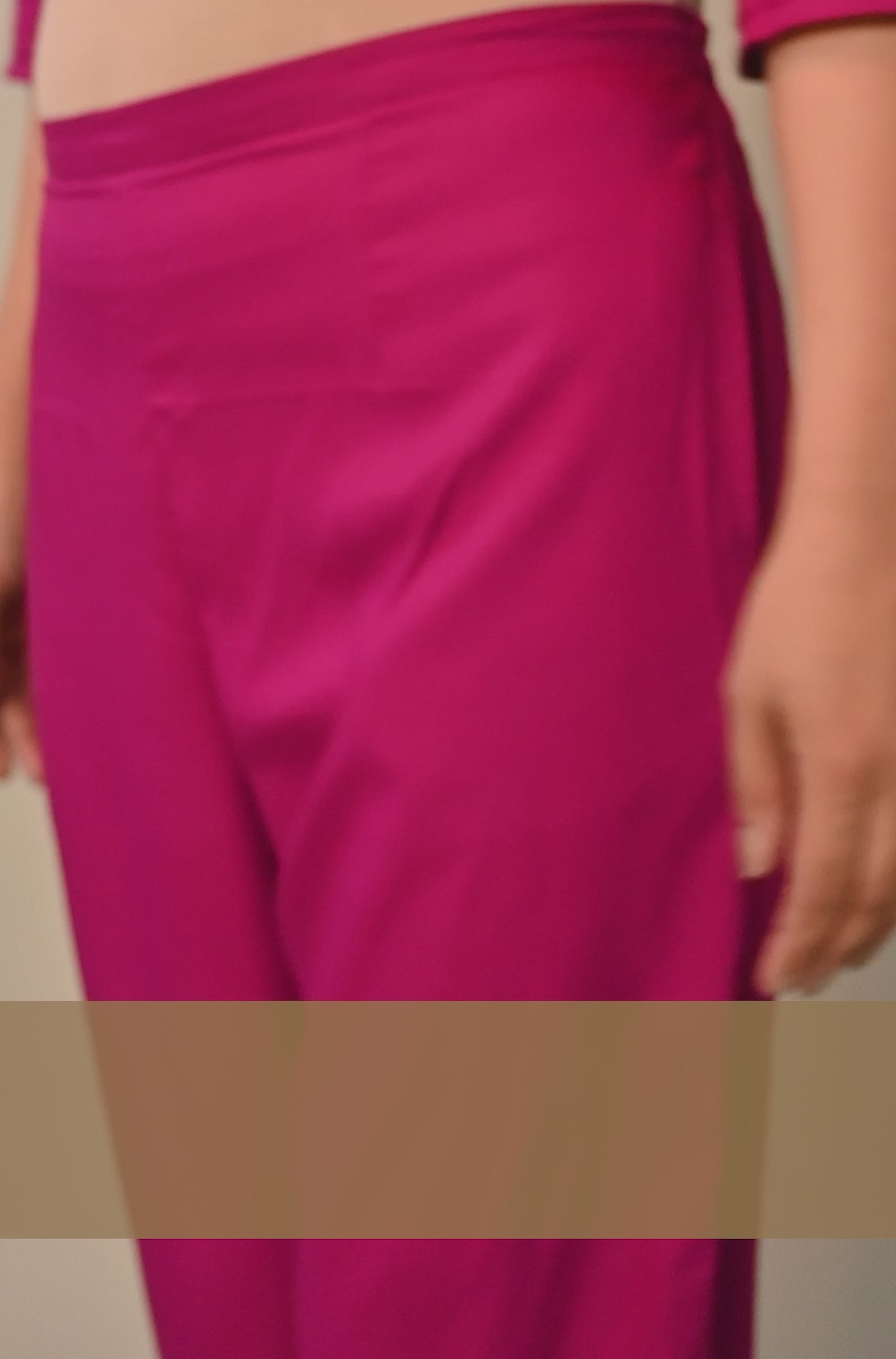 Crafted from Viscose, these Pink bottoms are designed for all-day comfort. The chic Solid work adds flair, and pockets provide convenience for carrying essentials. Great for casual days, shopping trips, or work, these bottoms pair effortlessly with your favourite tops. Their durable design and easy maintenance make them a practical staple.