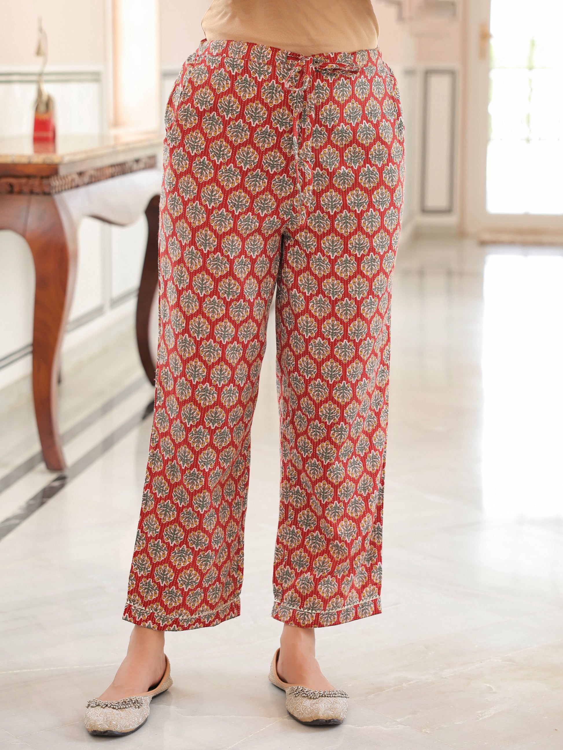 Crafted from Kantha Cotton, these Maroon bottoms are designed for all-day comfort. The chic Geometric work adds flair, and pockets provide convenience for carrying essentials. Great for casual days, shopping trips, or work, these bottoms pair effortlessly with your favourite tops. Their durable design and easy maintenance make them a practical staple.
