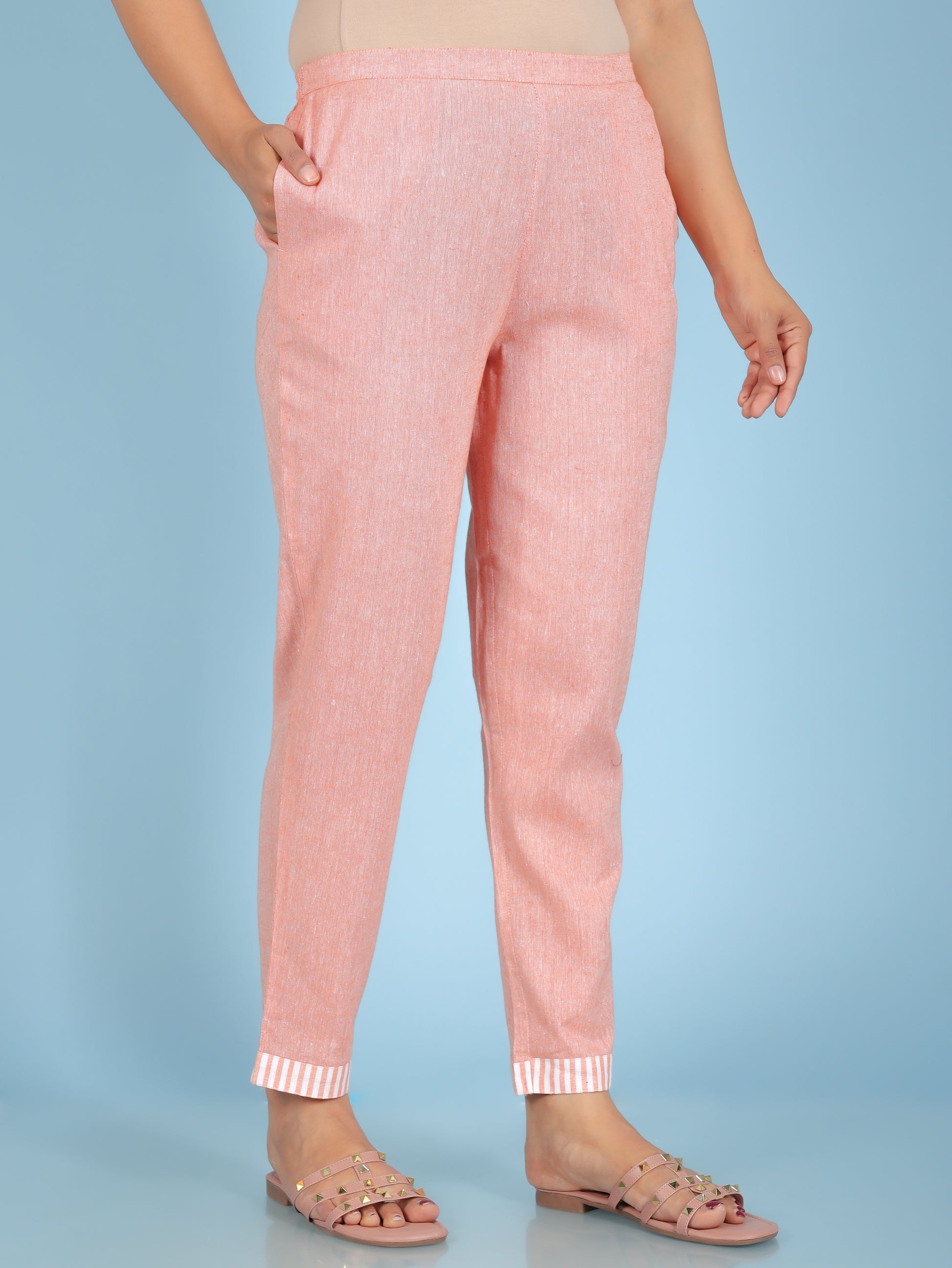 These Orange trouser crafted from breathable Blend Cotton combine comfort and style. The Woven Design pattern adds a modern twist, while pockets make them practical for daily wear. Ideal for casual outings or workdays, they pair effortlessly with kurtas, tops, or tunics. Keep them looking fresh with minimal care and enjoy their all-day ease.