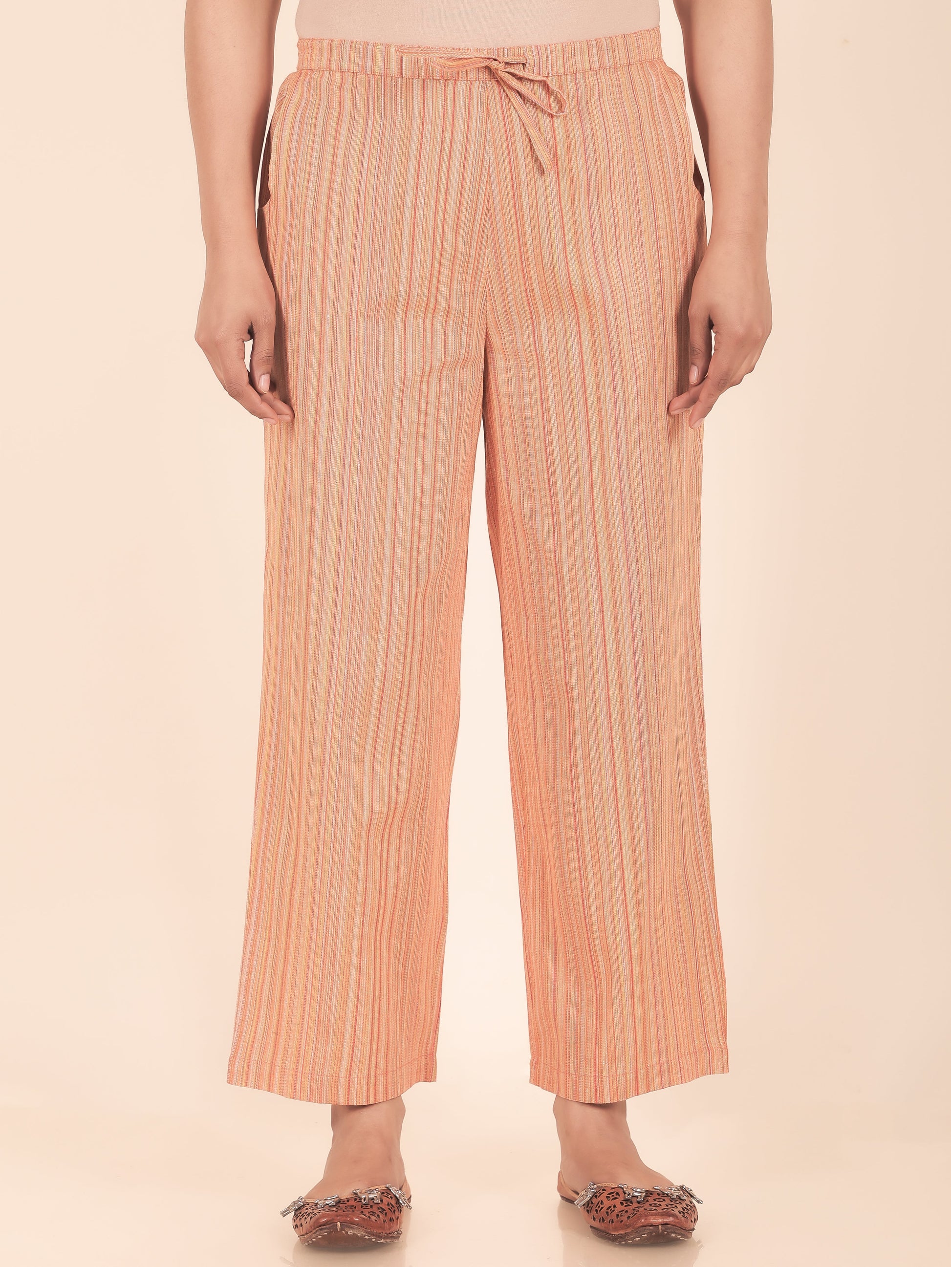 Designed for both comfort and versatility, these Blend Cotton Orange bottoms feature a stylish Woven Design design and pockets for added functionality. Perfect for office looks or weekend errands, they offer a flattering fit that works with a variety of tops. Pair with minimal accessories for a polished finish and enjoy effortless care.