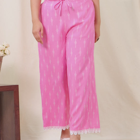 Upgrade your ethnic and western wear collection with these Pink palazzos. Crafted from breathable Viscose, they feature a flattering wide-leg design, subtle Geometric highlights, and pockets for functionality. Ideal for pairing with kurtas, tunics, or shirts, they’re a must-have for effortless styling. Keep them fresh with simple care, making them your everyday go-to choice.