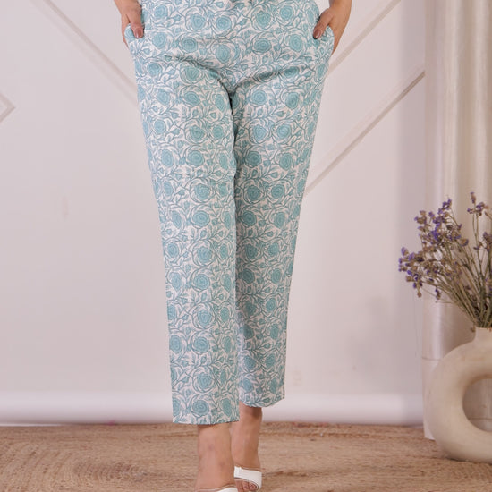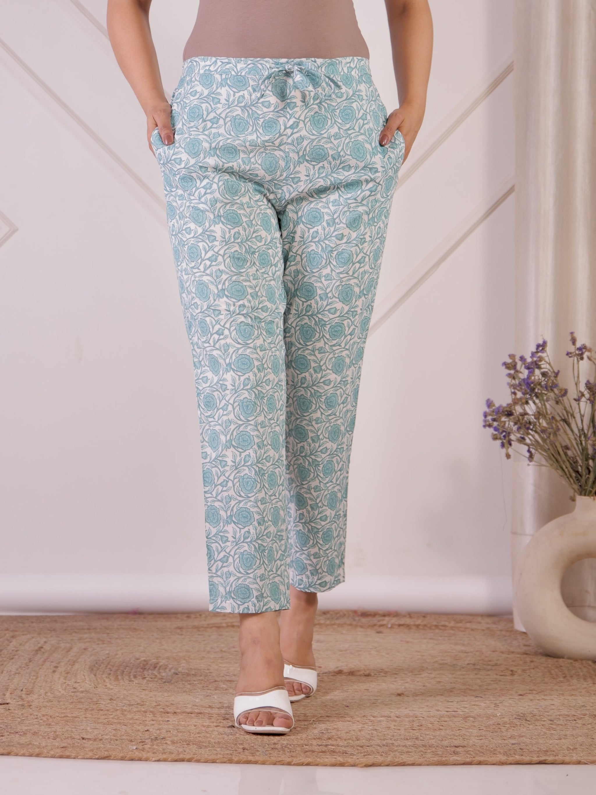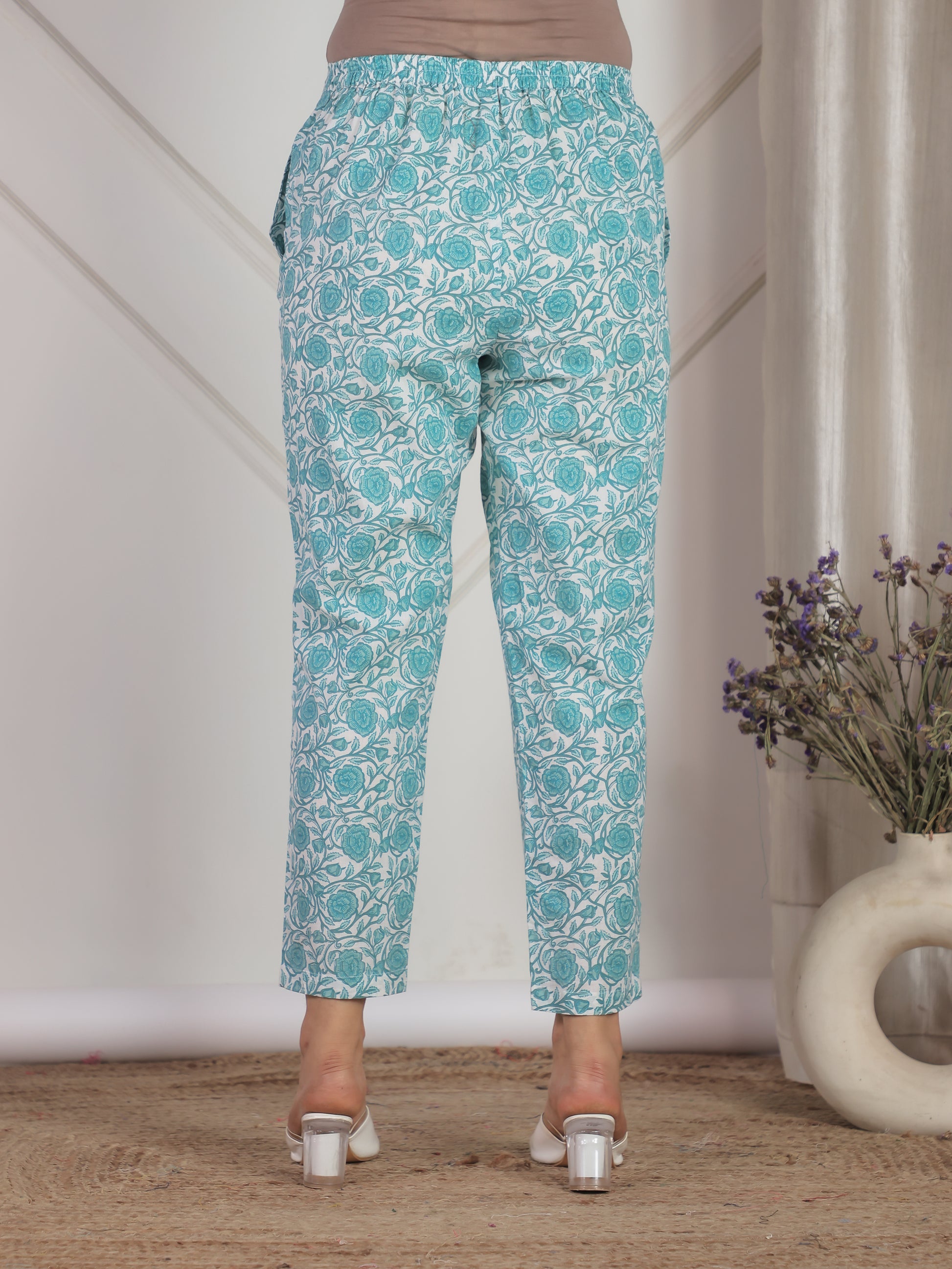 Crafted from Soft Cotton, these Turquoise bottoms are designed for all-day comfort. The chic Floral work adds flair, and pockets provide convenience for carrying essentials. Great for casual days, shopping trips, or work, these bottoms pair effortlessly with your favourite tops. Their durable design and easy maintenance make them a practical staple.