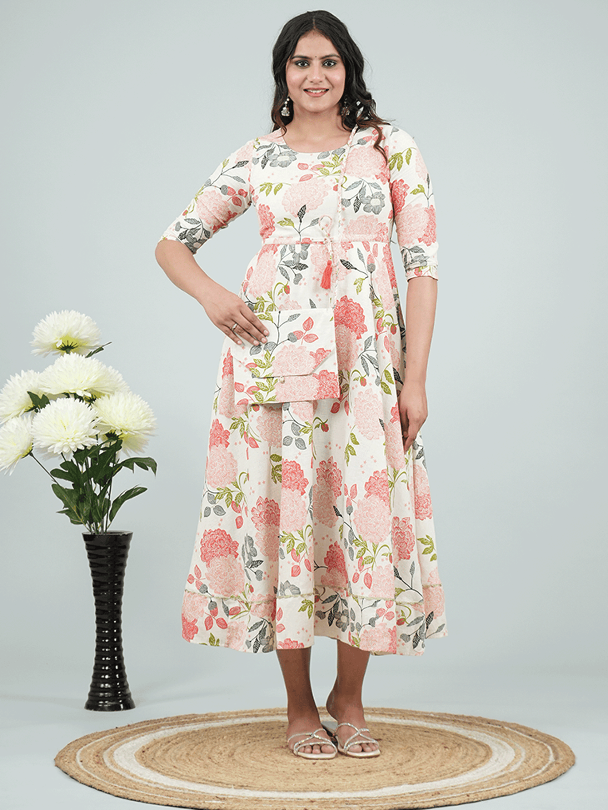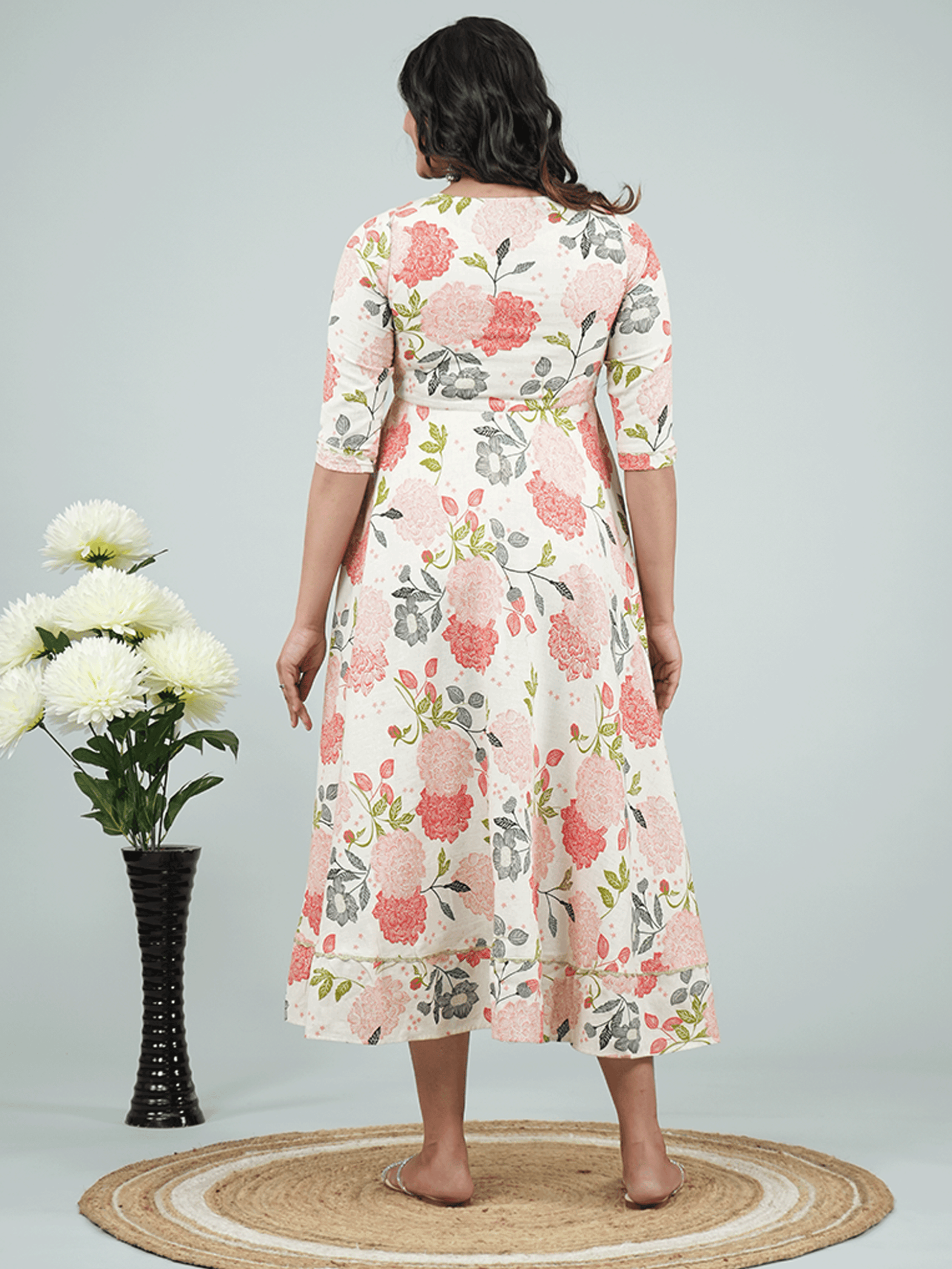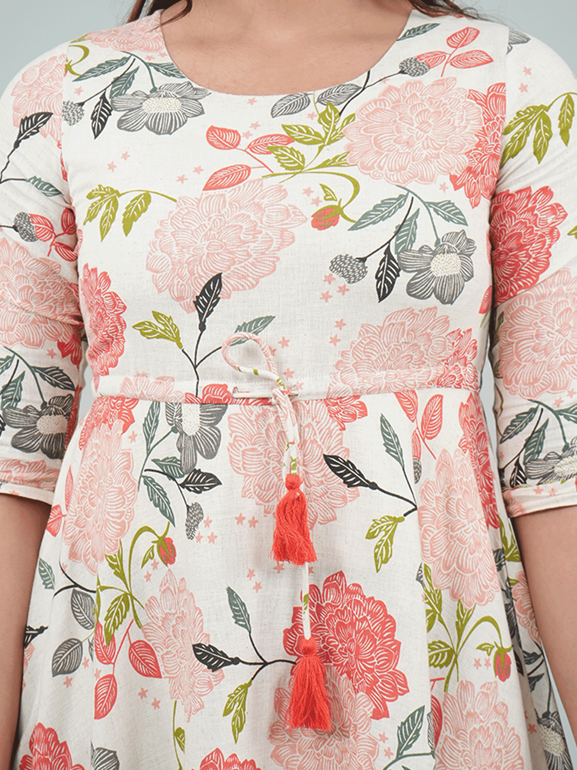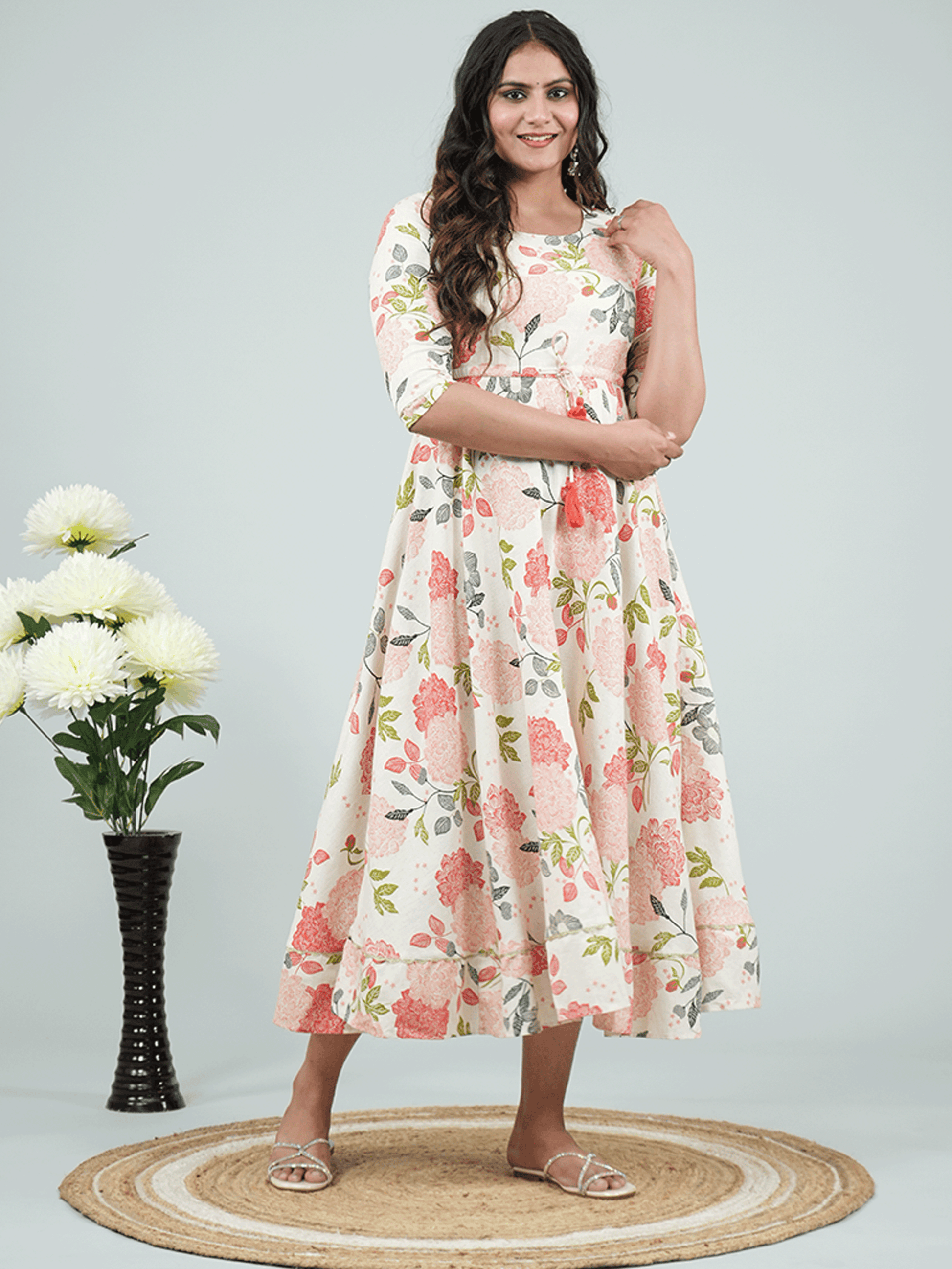 Designed for comfort and confidence, this Linen Cotton dress in Beige features a flattering Anarkali silhouette and unique Floral accents. The work detailing adds sophistication, making it perfect for coffee dates, casual evenings, or weekend brunches. Accessorise with minimal jewellery and flats for a polished finish.