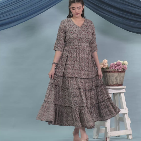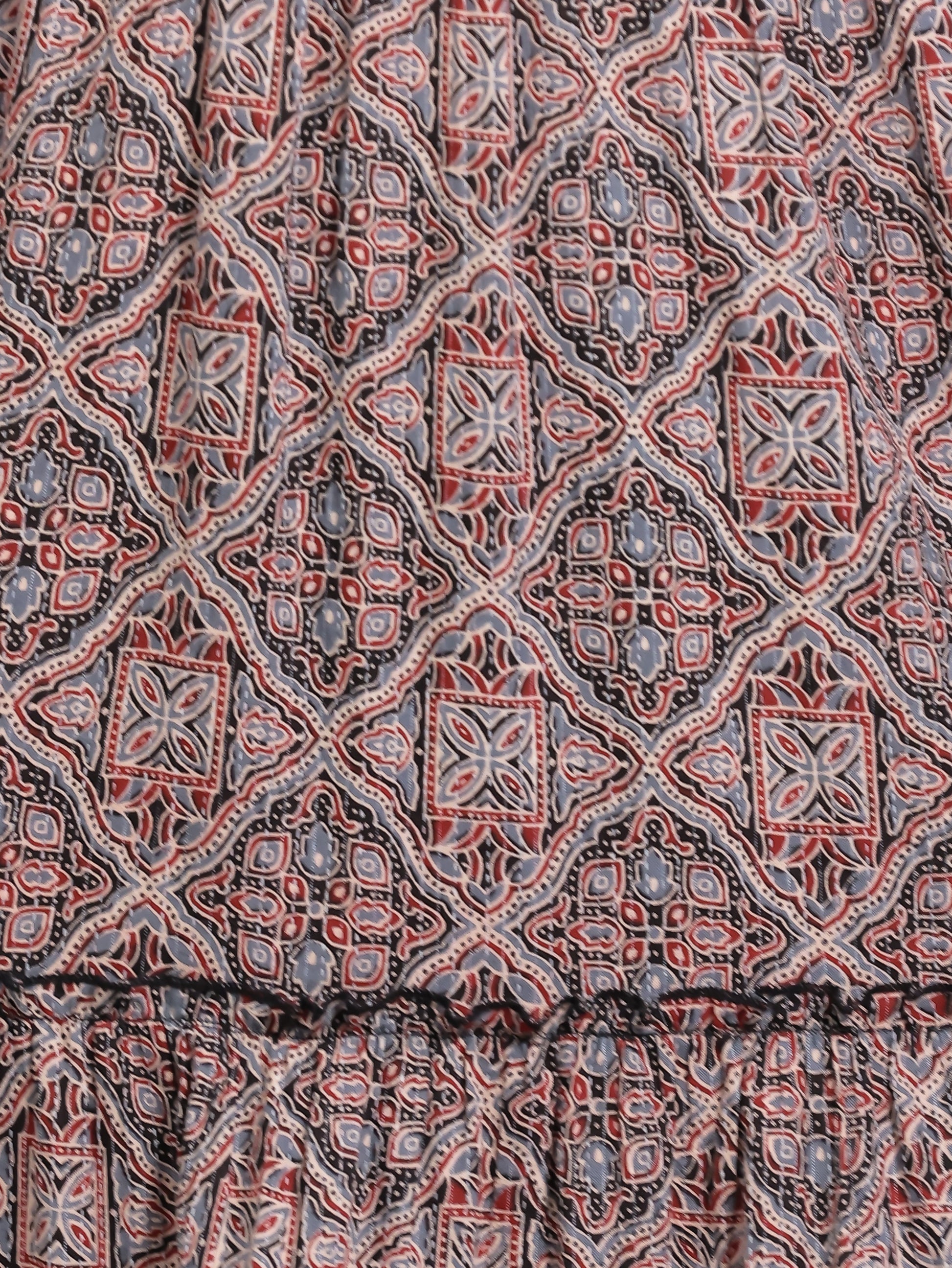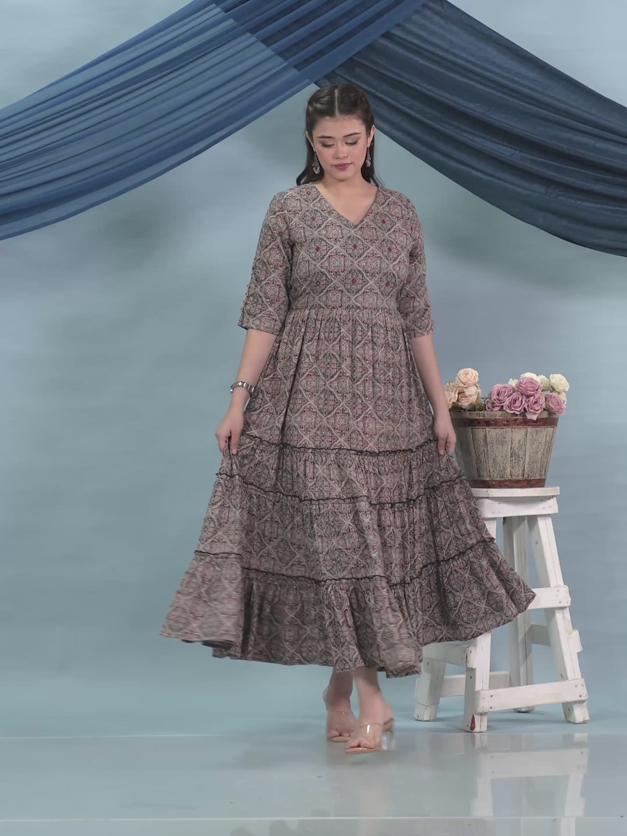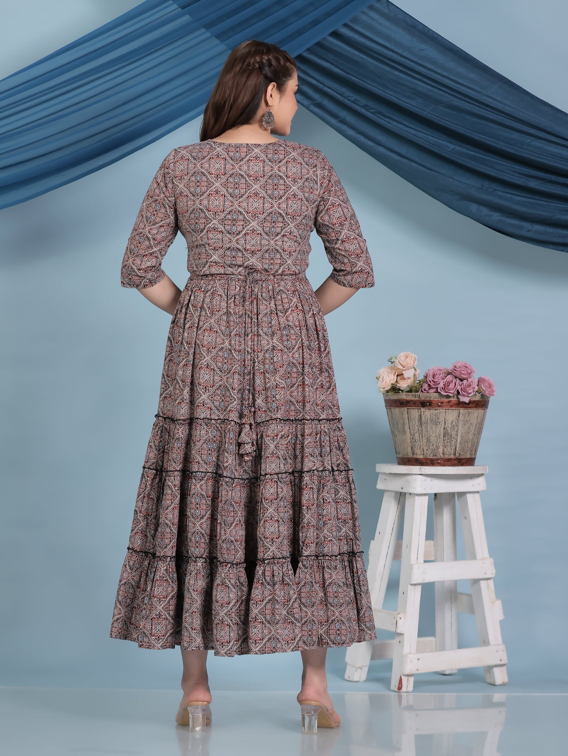 Embroidered Kantha Cotton Geometric Anarkali Black Dress