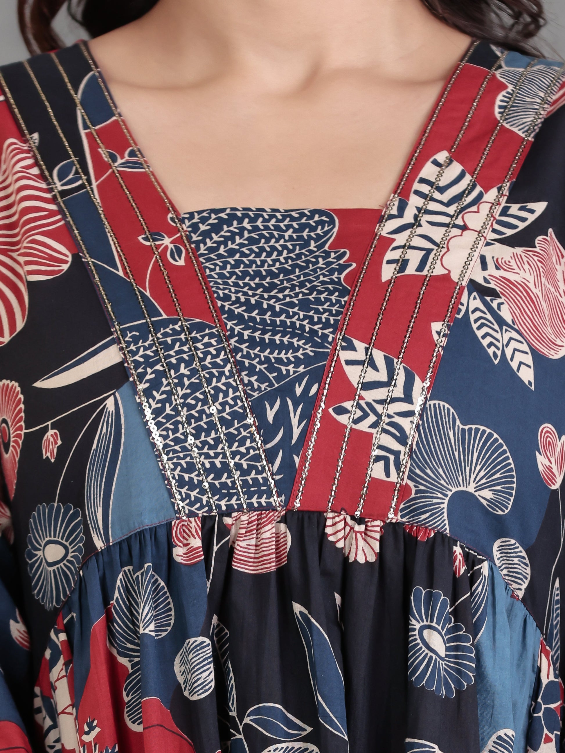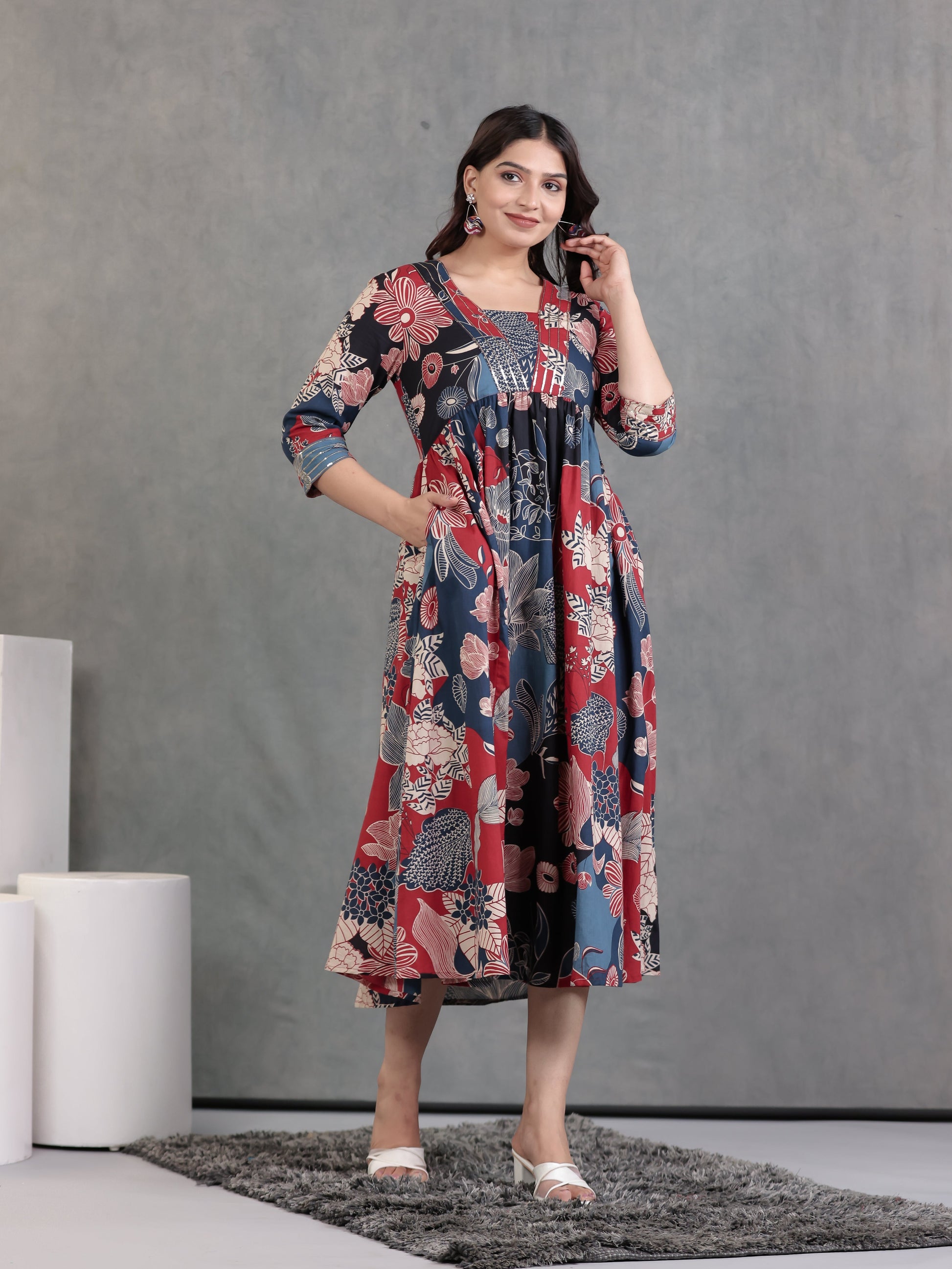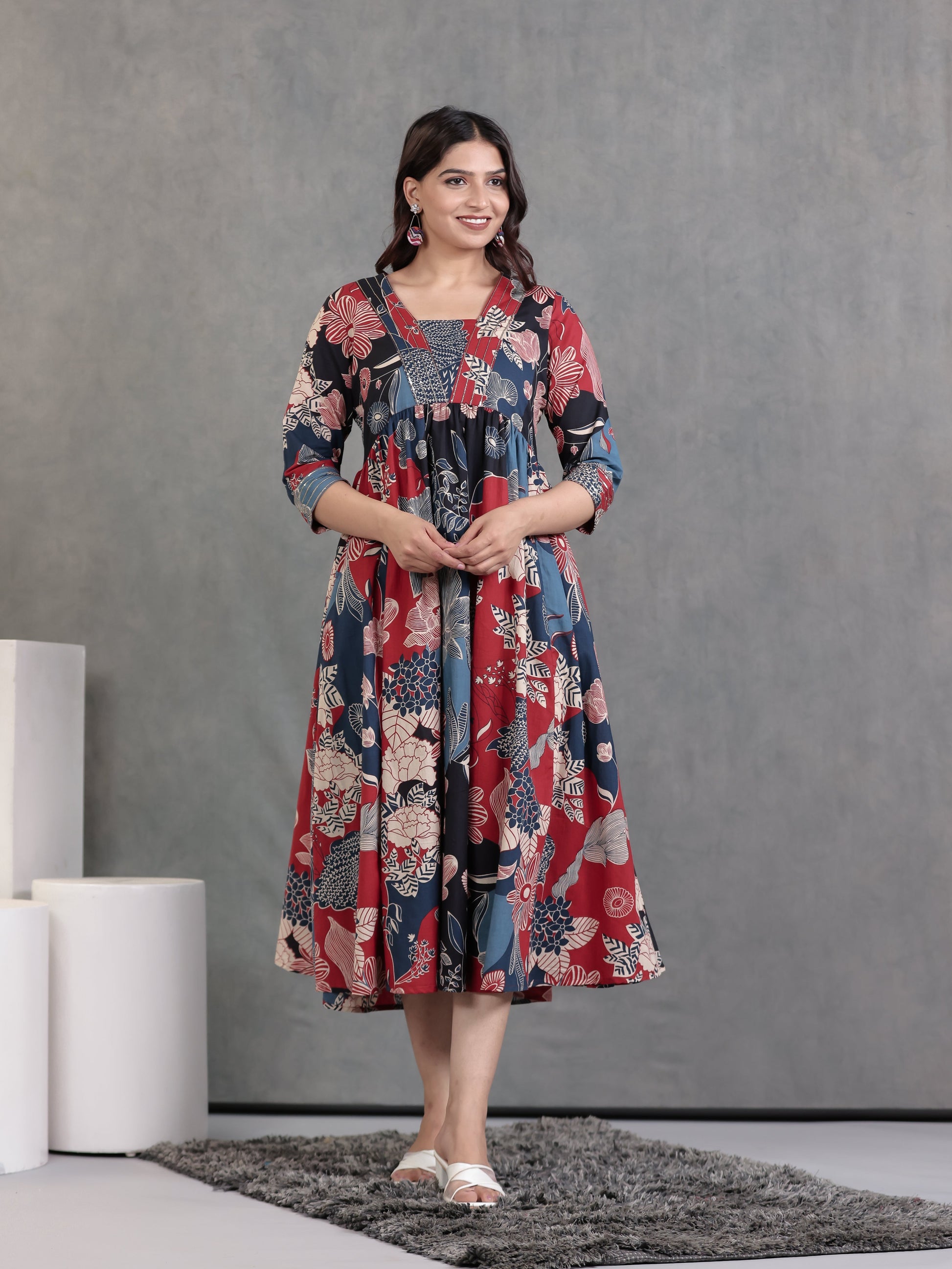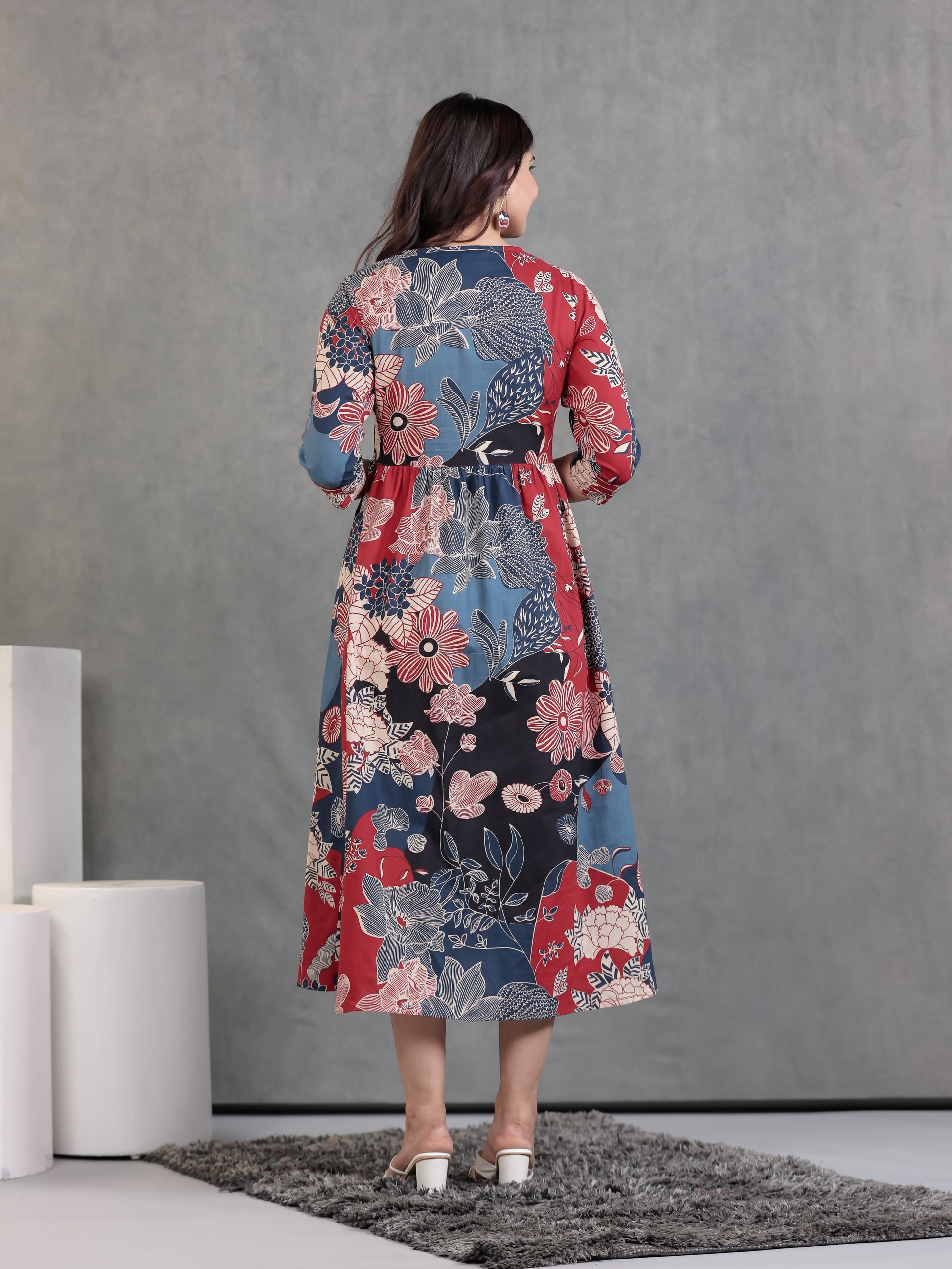 Designed for comfort and confidence, this Soft Cotton dress in Blue features a flattering Gathered silhouette and unique Floral accents. The work detailing adds sophistication, making it perfect for coffee dates, casual evenings, or weekend brunches. Accessorise with minimal jewellery and flats for a polished finish.