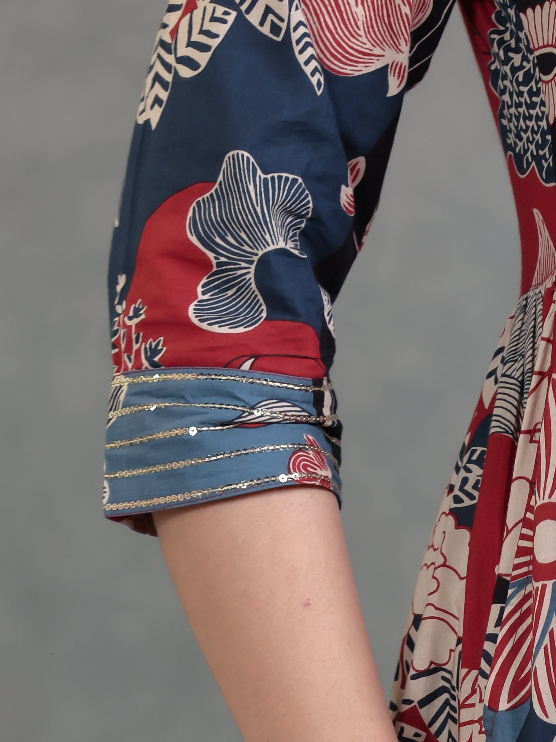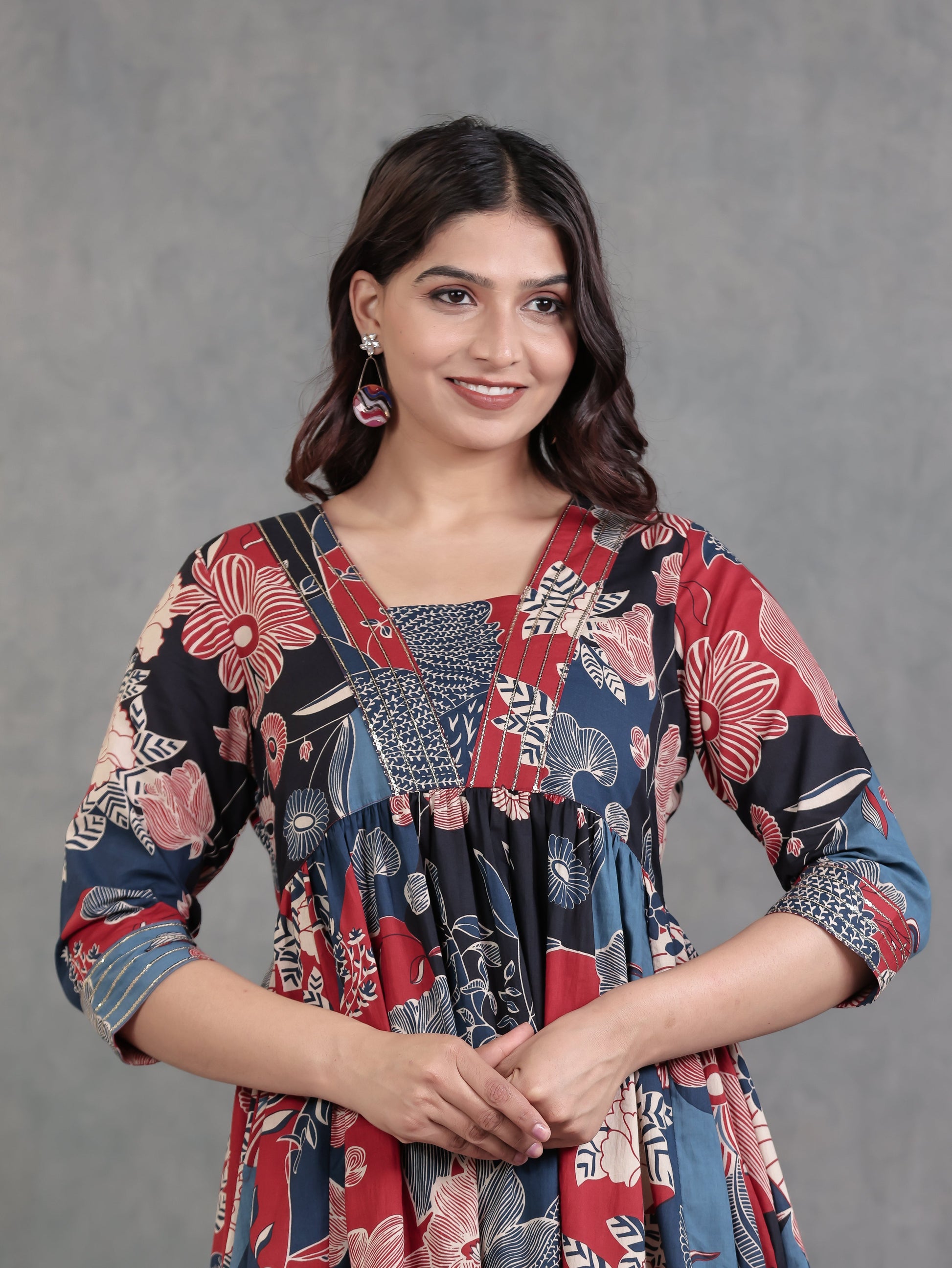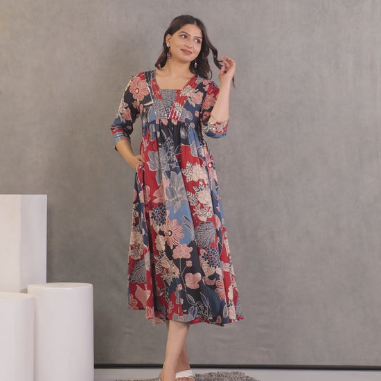 Embroidered Soft Cotton Floral Anarkali Mutlicolour Dress