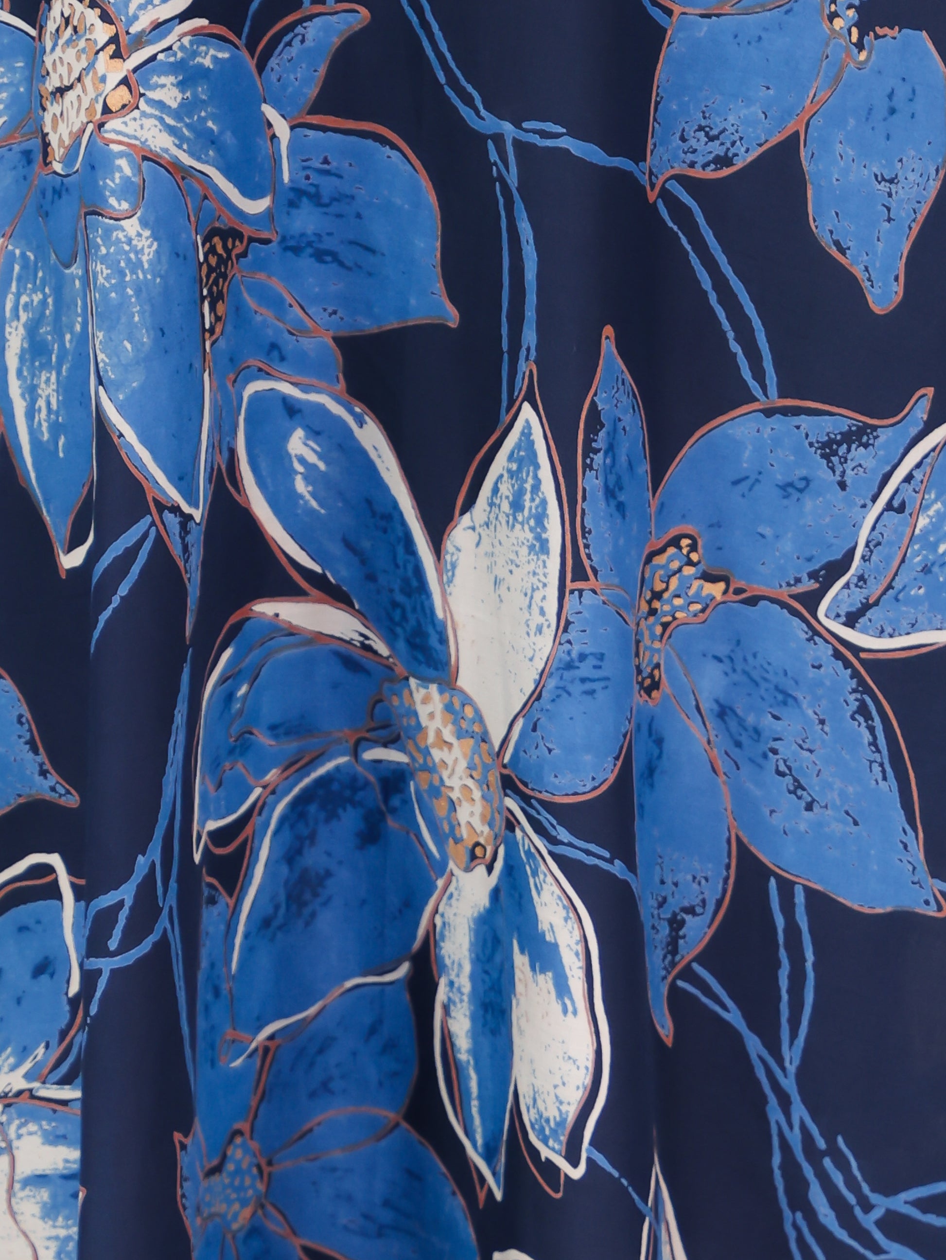This Blue dress crafted from soft Soft Cotton is designed for comfort and versatility. The Flared cut and Floral patterns add a playful vibe, while work accents make it unique. Perfect for holidays, shopping trips, or relaxed evenings. Style with a sling bag and chic sandals. Care is effortless with simple instructions.