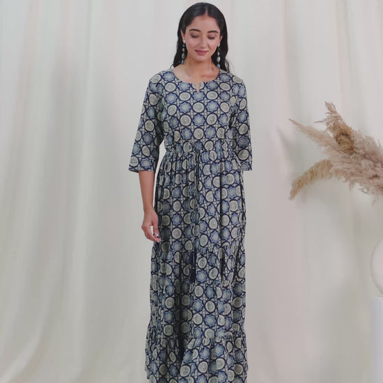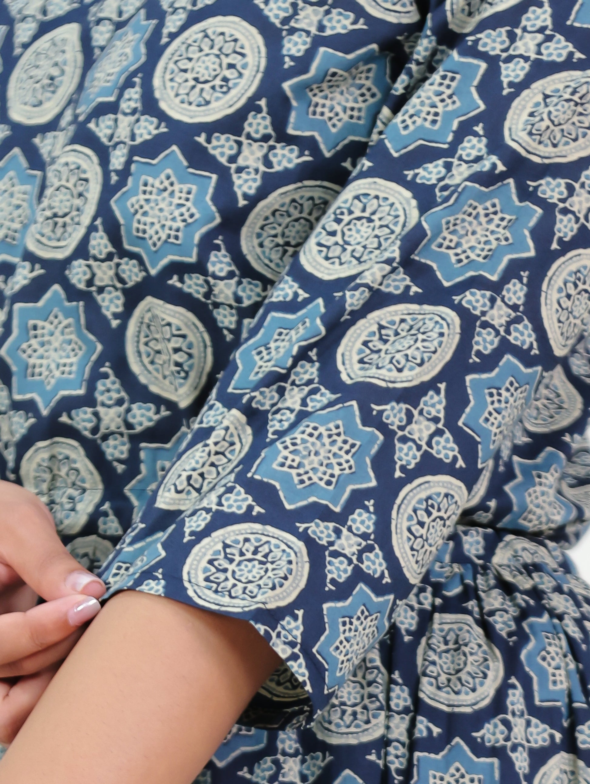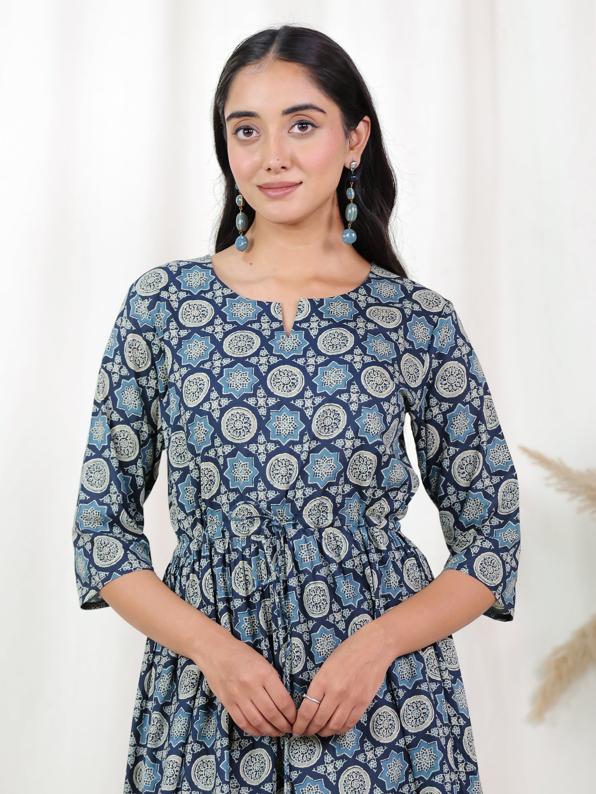 Soft Cotton Geometric Anarkali Blue Dress