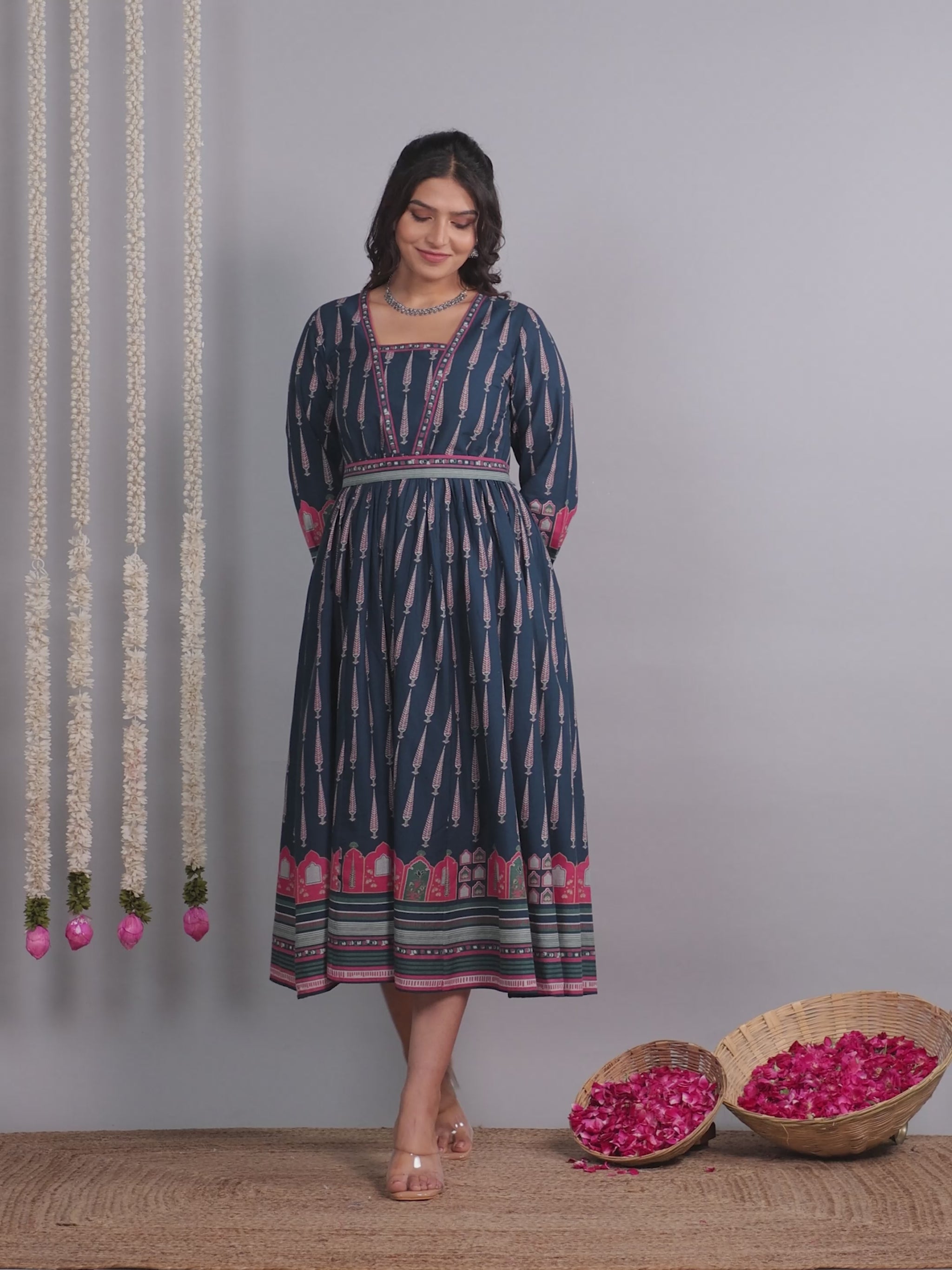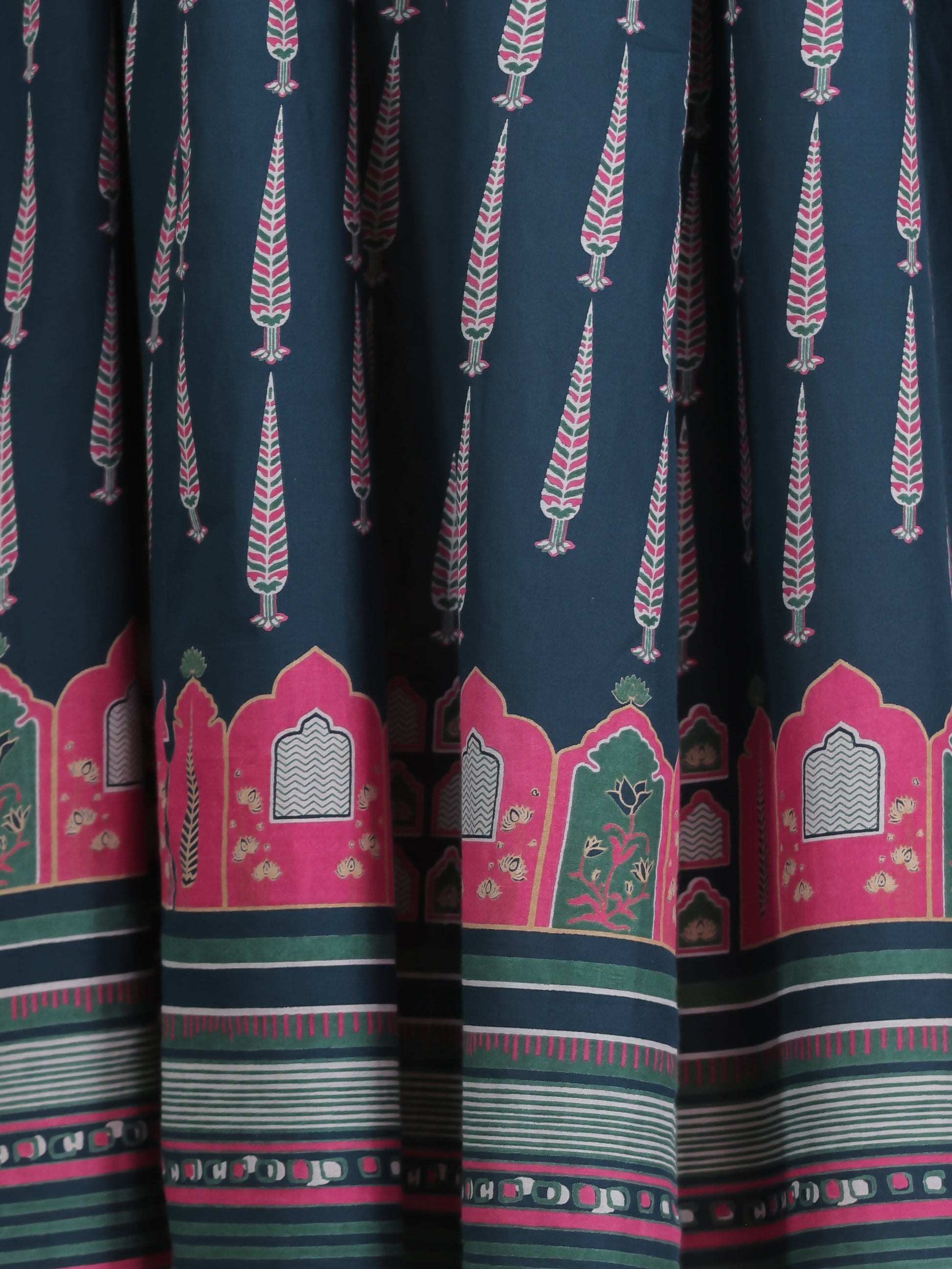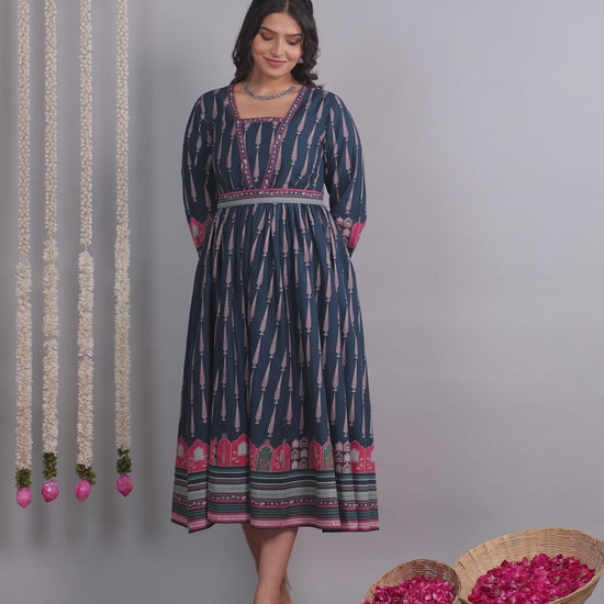 Soft Cotton Mughal Print Anarkali Blue Dress