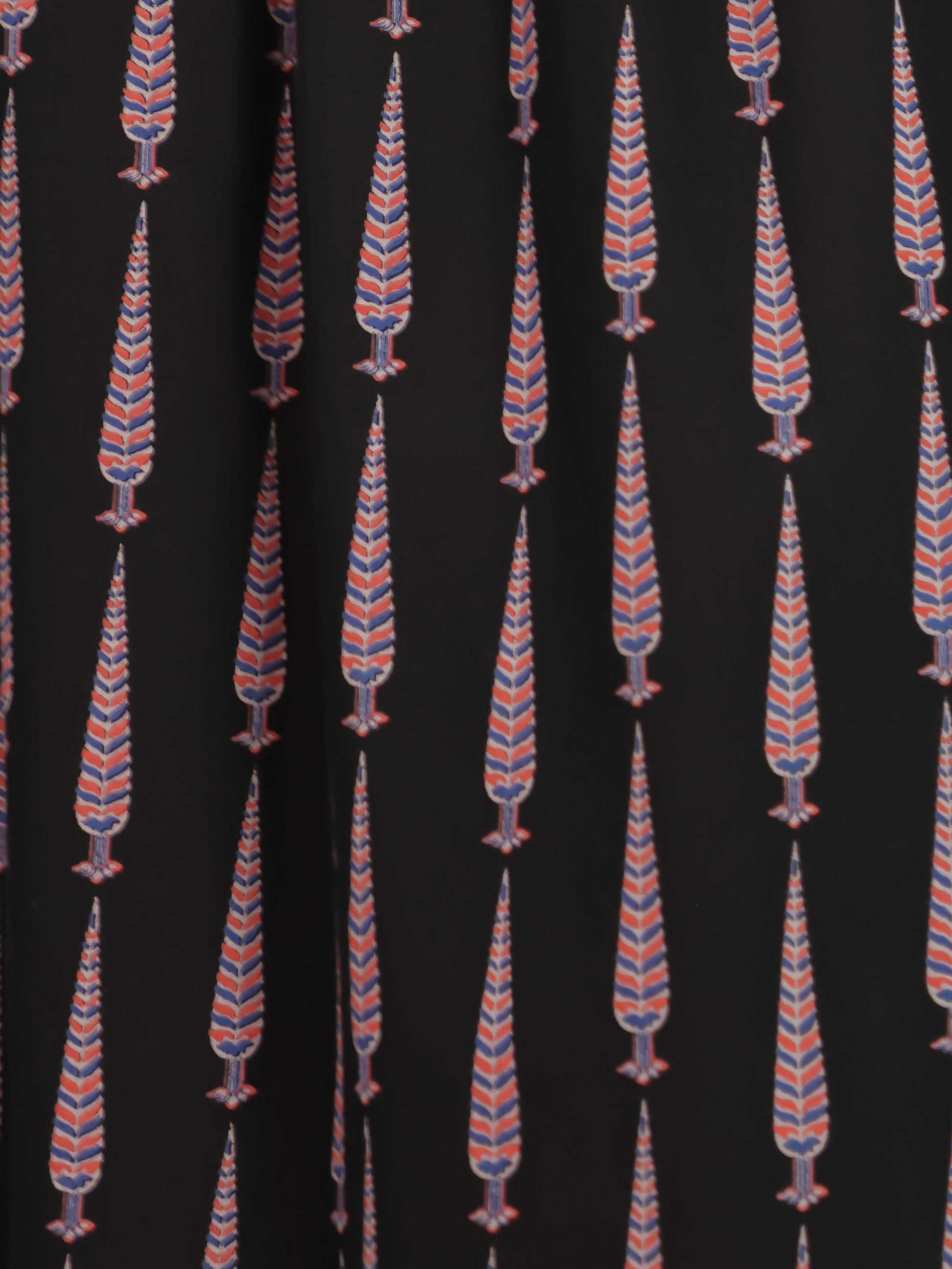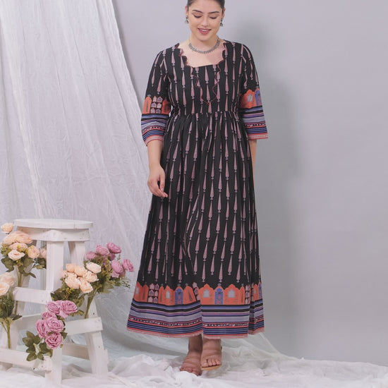 Embroidered Soft Cotton Mughal Print Flared Black Dress