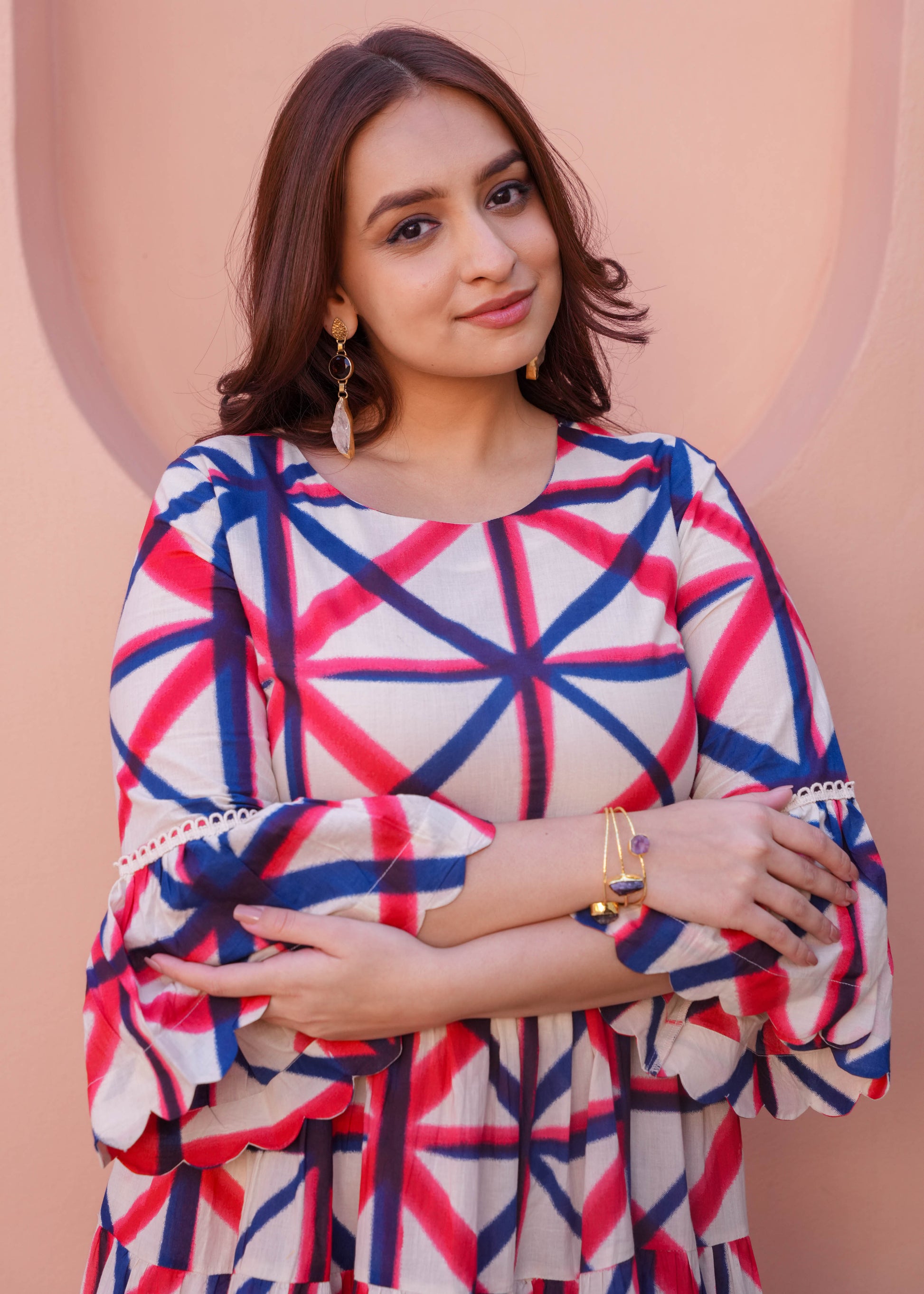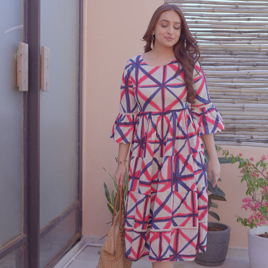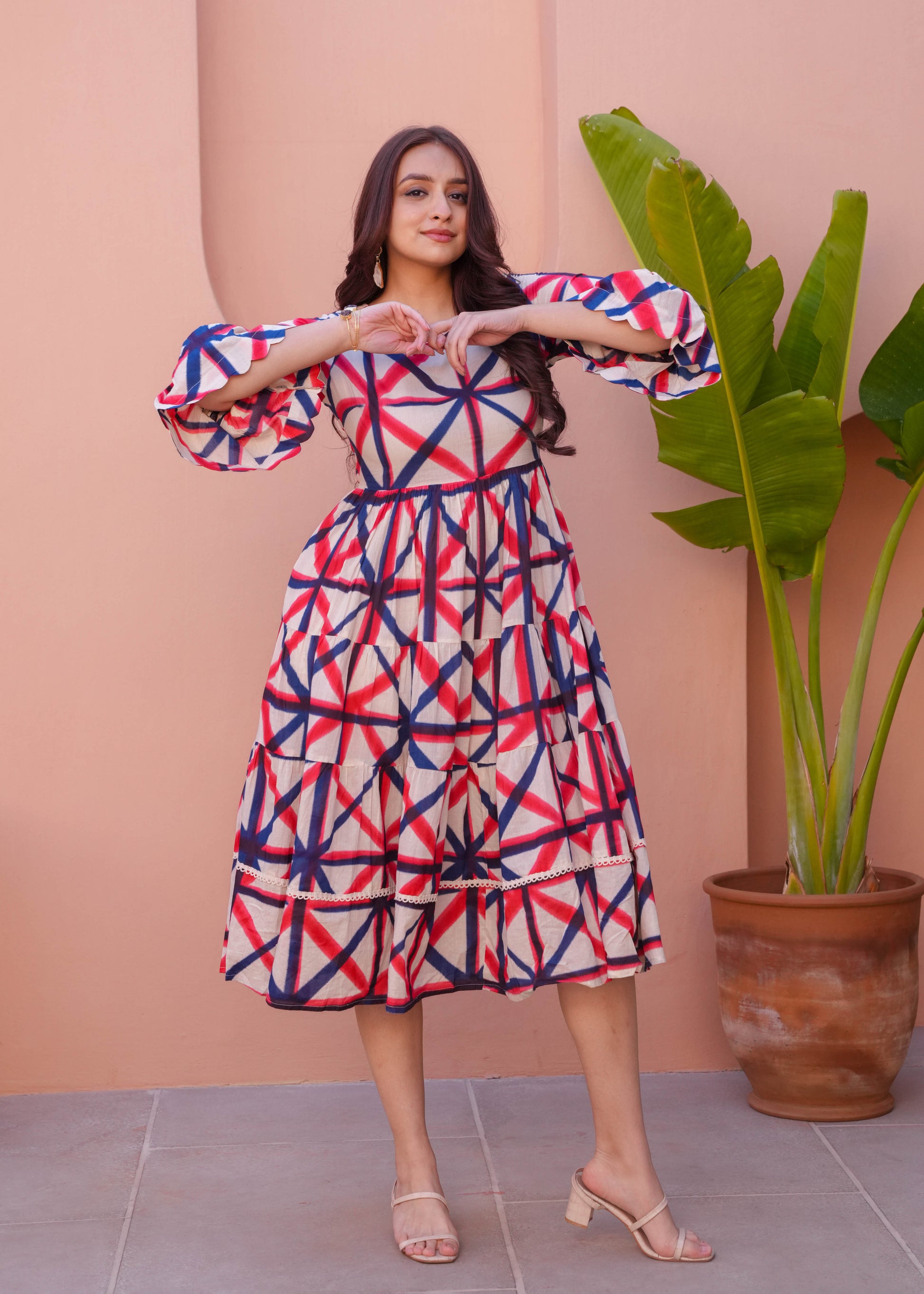 Designed for comfort and confidence, this Soft Cotton dress in Cream features a flattering Flared silhouette and unique Geometric accents. The work detailing adds sophistication, making it perfect for coffee dates, casual evenings, or weekend brunches. Accessorise with minimal jewellery and flats for a polished finish.