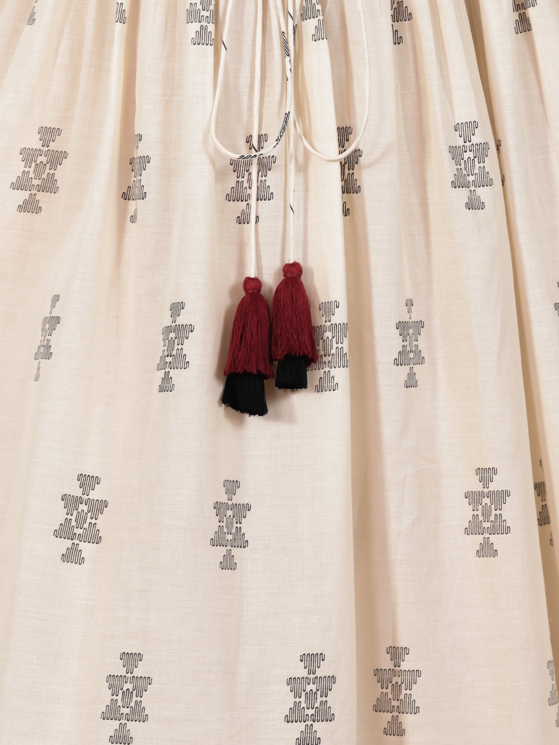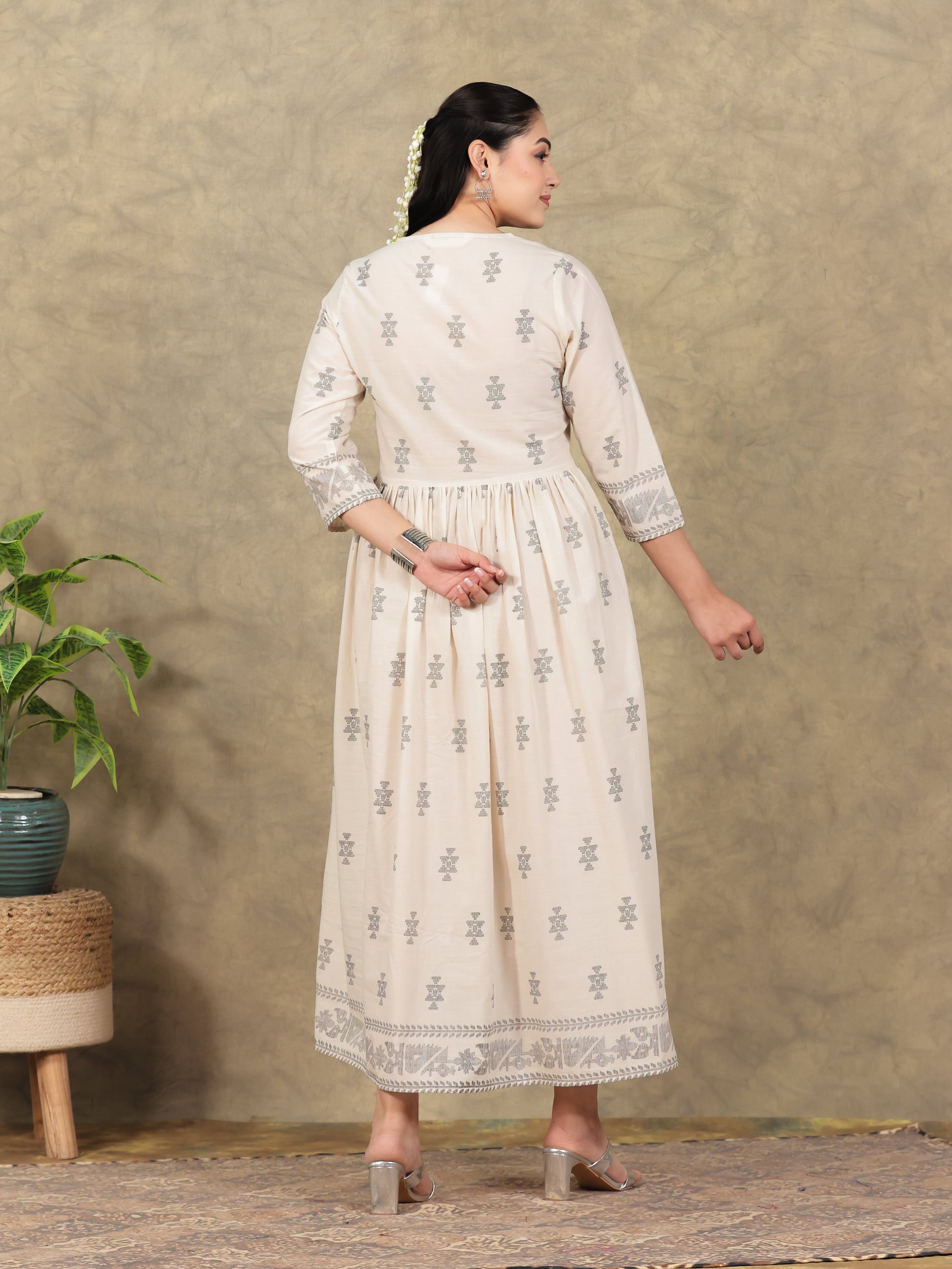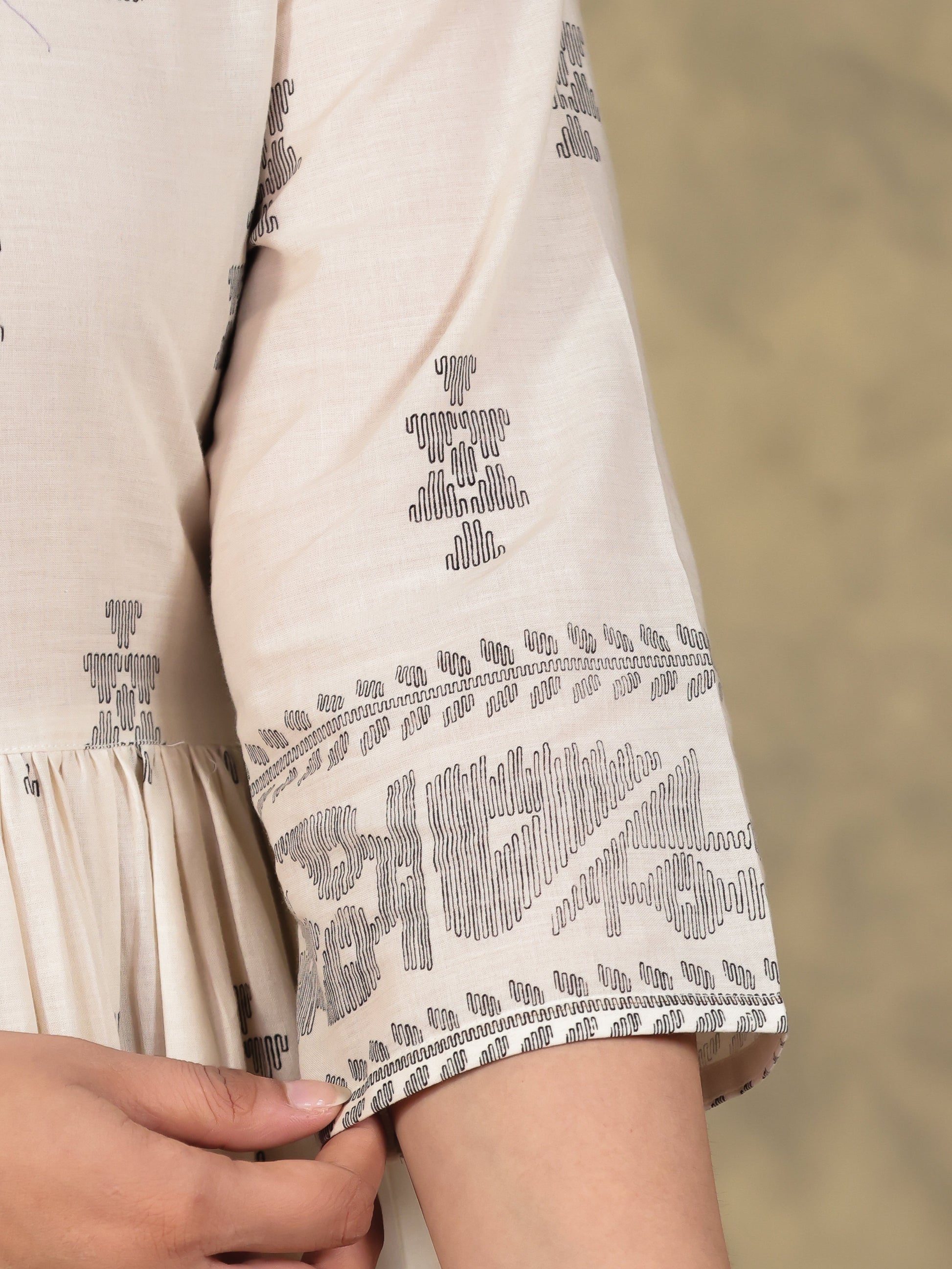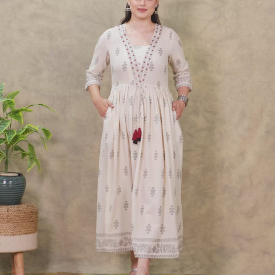 Embroidered Soft Cotton Geometric Anarkali Cream Dress