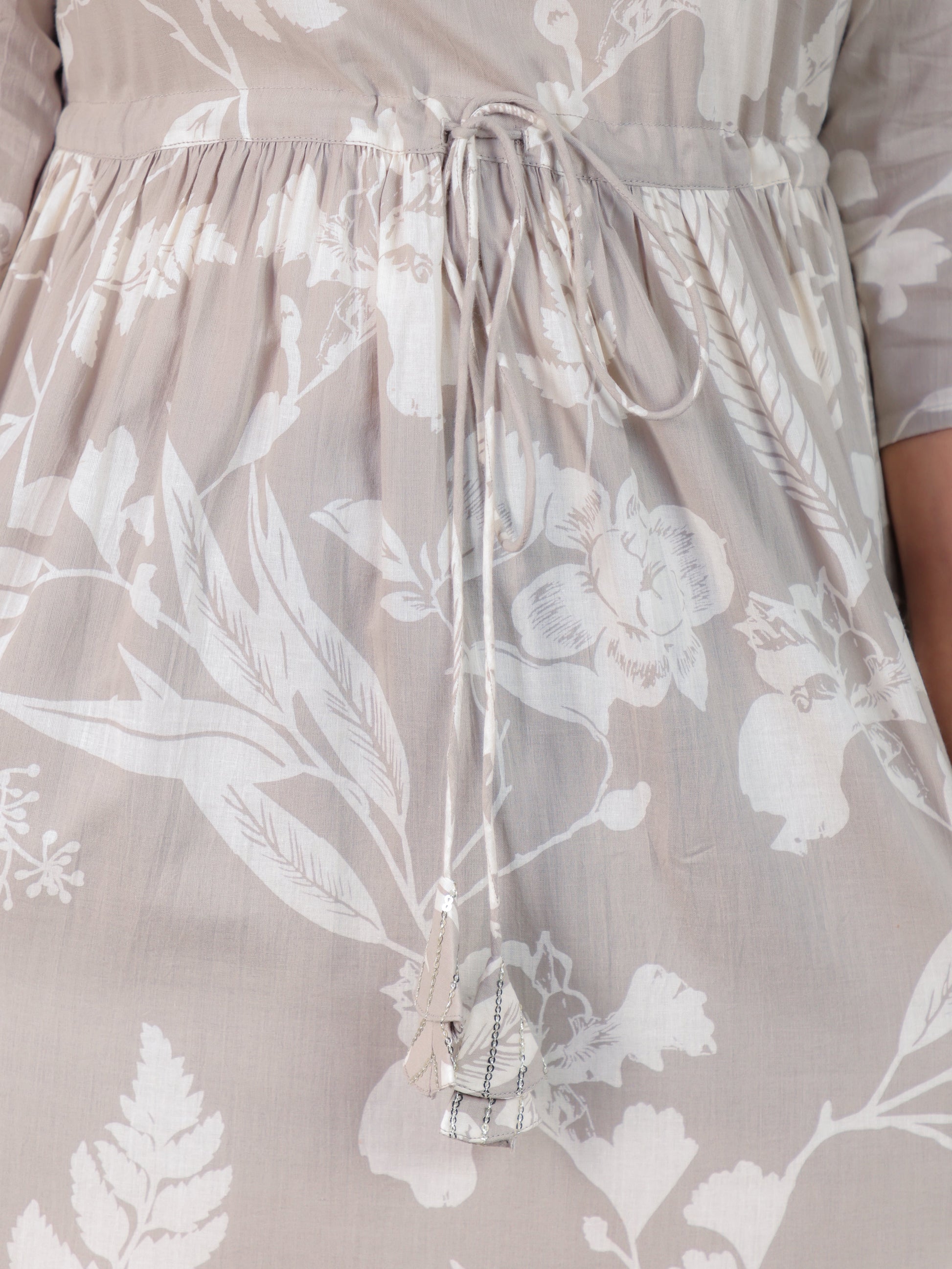 Add a stylish staple to your wardrobe with this Tiered dress in Grey. The breathable Soft Cotton fabric keeps you comfortable all day, while the Floral motifs and subtle work elements create a sophisticated charm. Dress it up with heels or keep it casual with flats.
