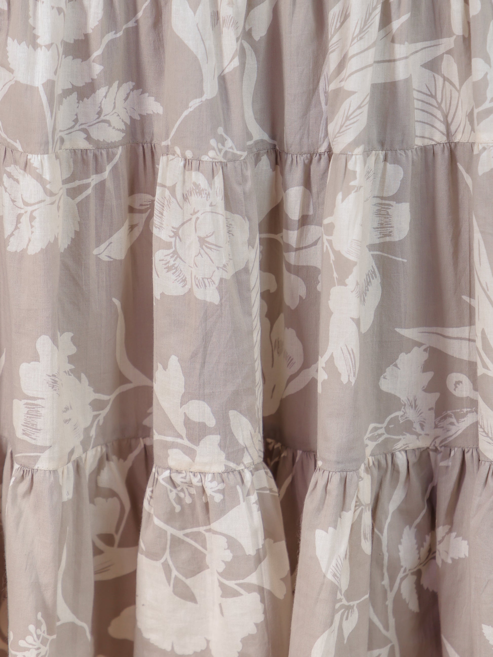 Embroidered Soft Cotton Floral Tiered Grey Dress