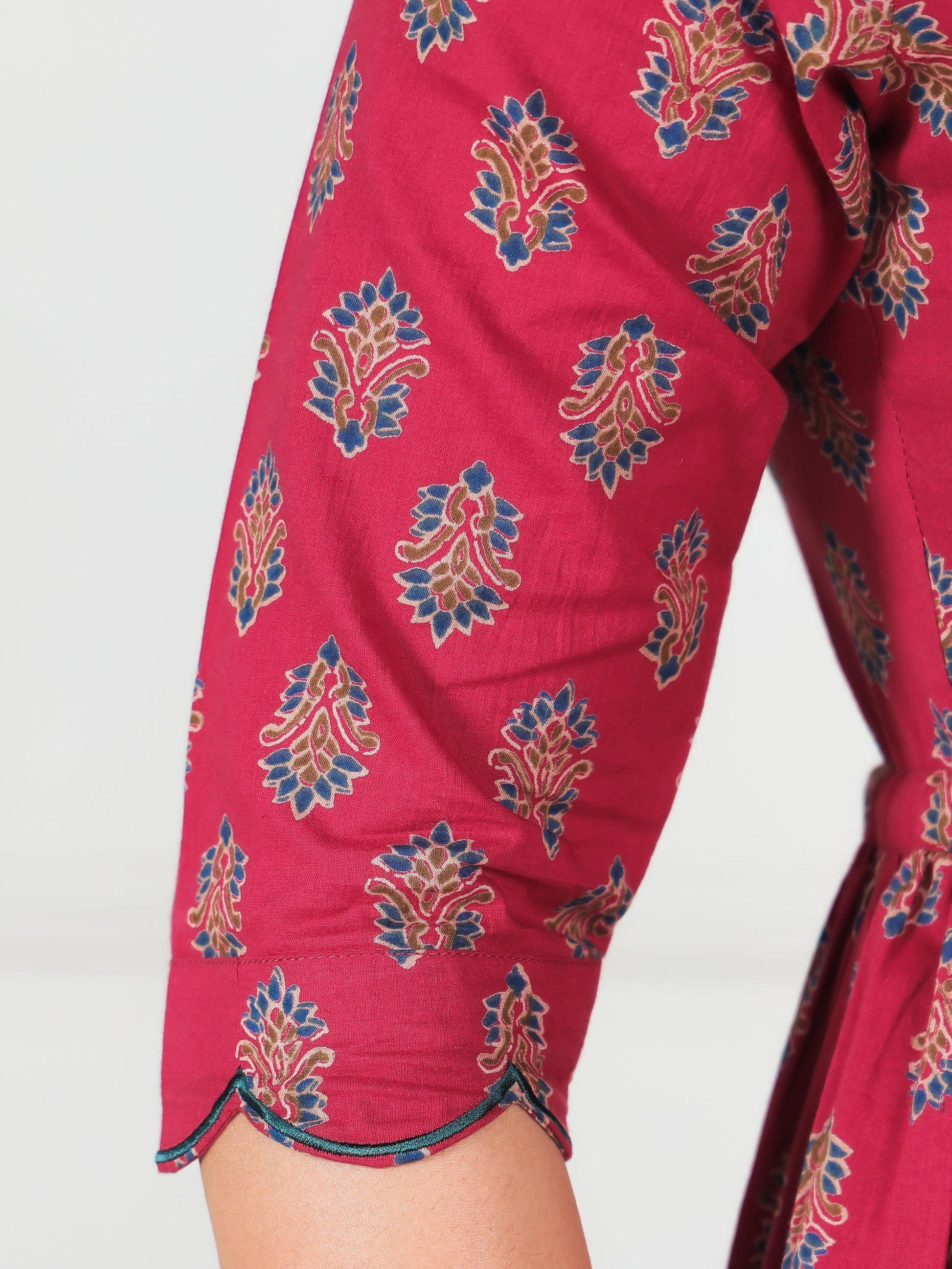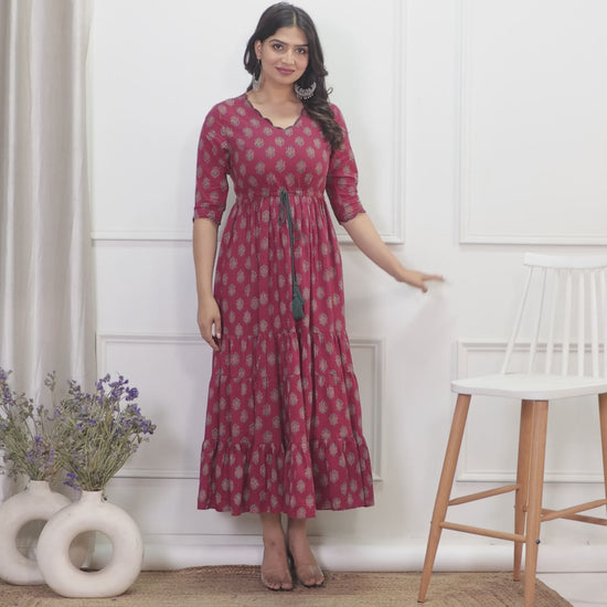 This Maroon Tiered dress in Soft Cotton is perfect for effortless daily wear. The Floral pattern and delicate work bring a modern yet artisanal touch. Lightweight and breathable, it’s ideal for warm days or casual outings. Pair with sandals or sneakers for a relaxed vibe. Easy to care for ensures hassle-free upkeep.
