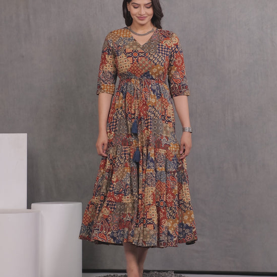 Soft Cotton Patchwork A-line Multicolor Dress