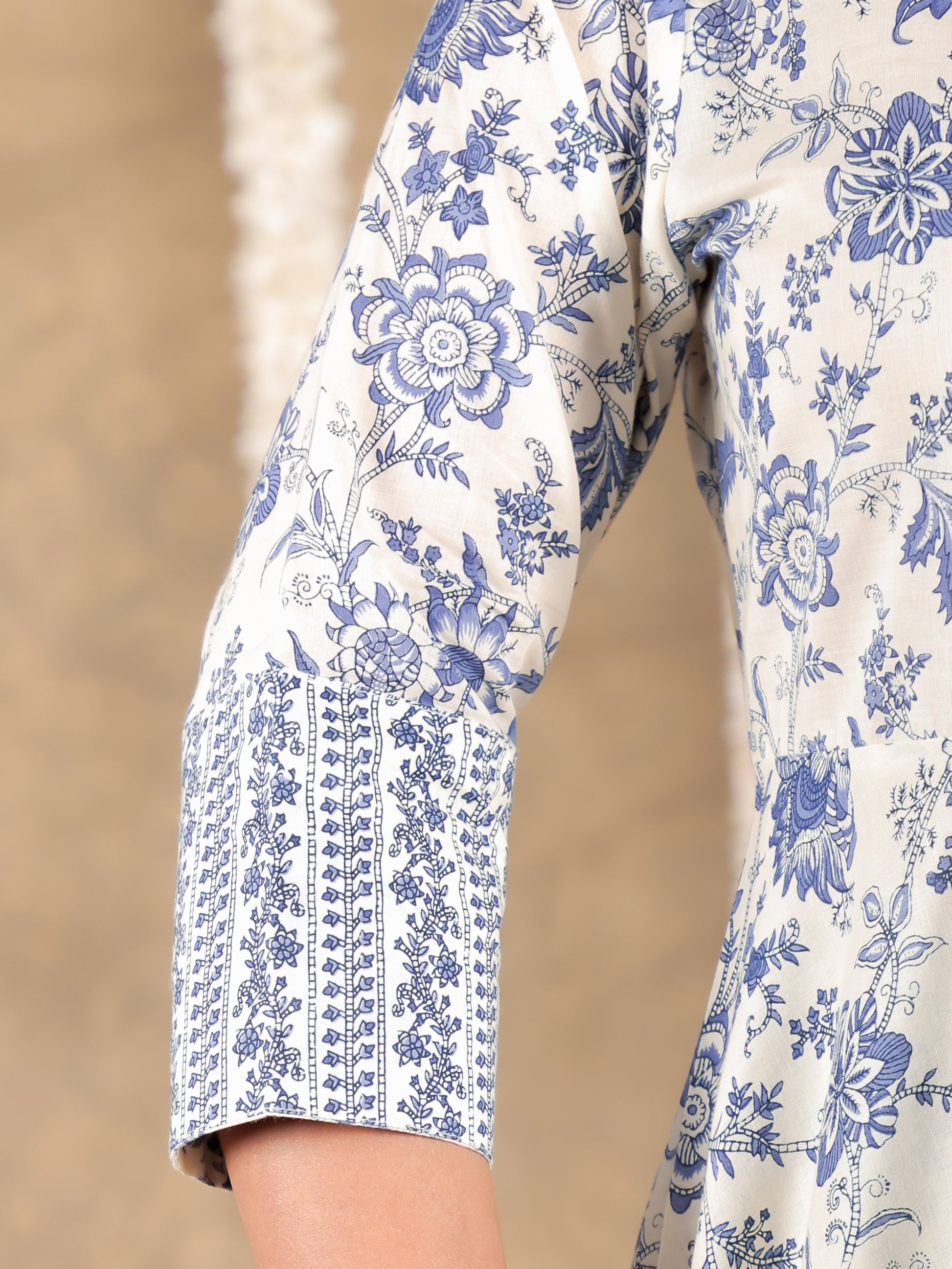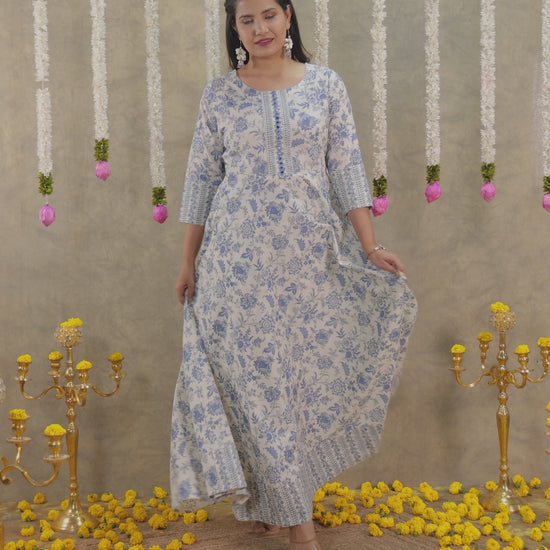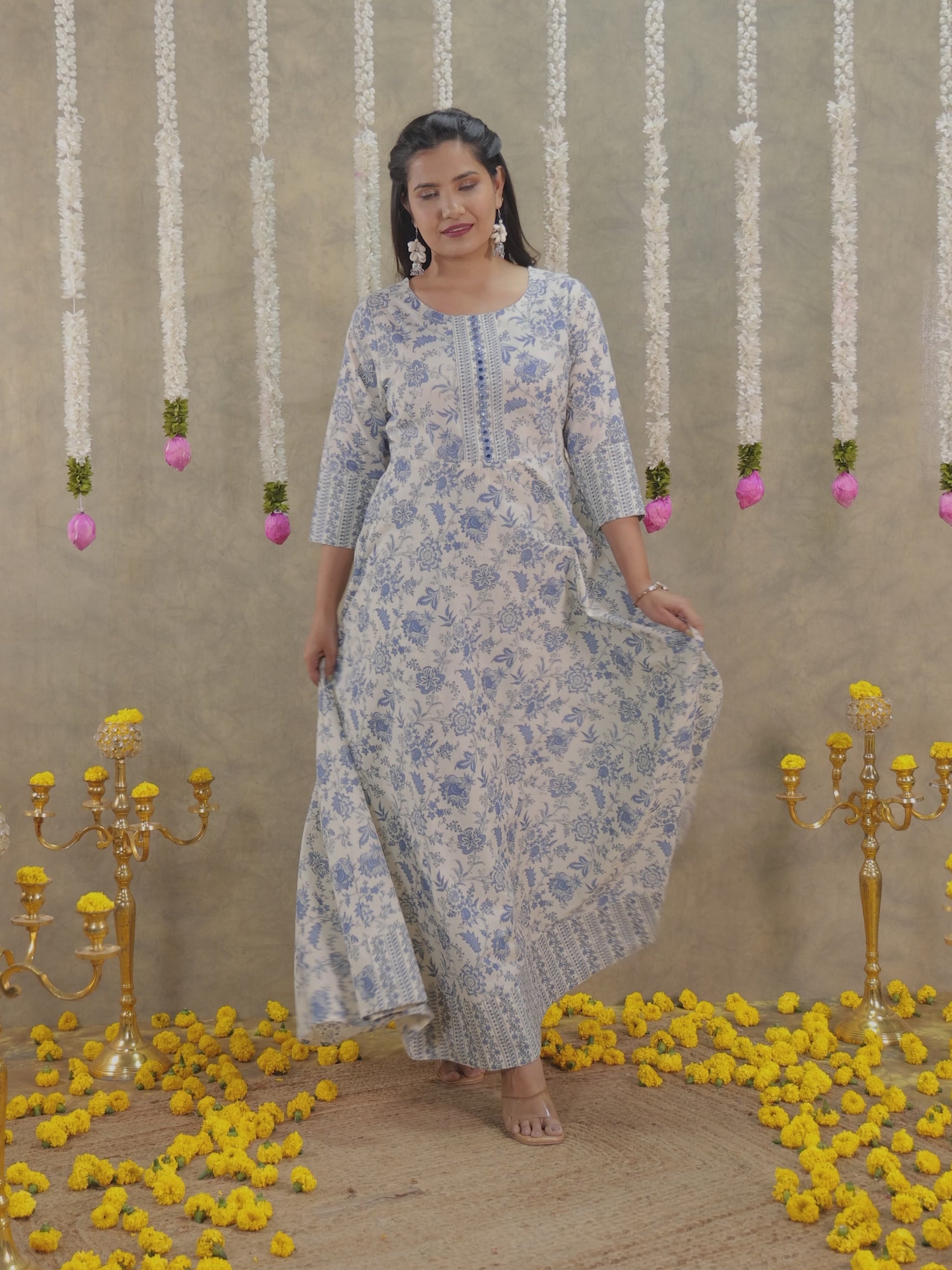 Embroidered Soft Cotton Floral Anarkali Off White Dress