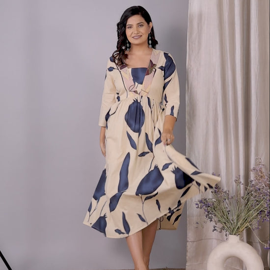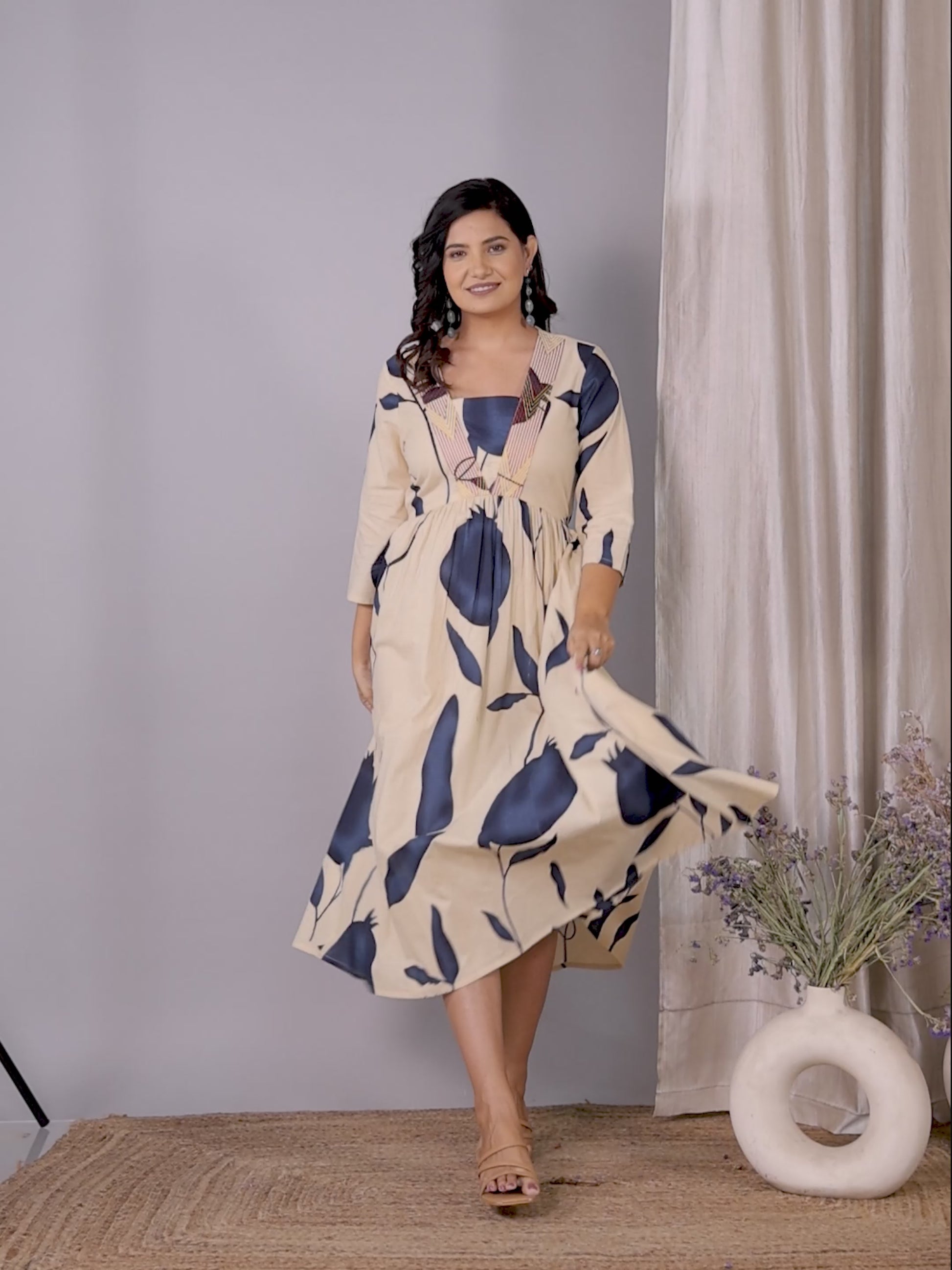 Add a stylish staple to your wardrobe with this dress in Off White. The breathable Soft Cotton fabric keeps you comfortable all day, while the Floral motifs and subtle work elements create a sophisticated charm. Dress it up with heels or keep it casual with flats.