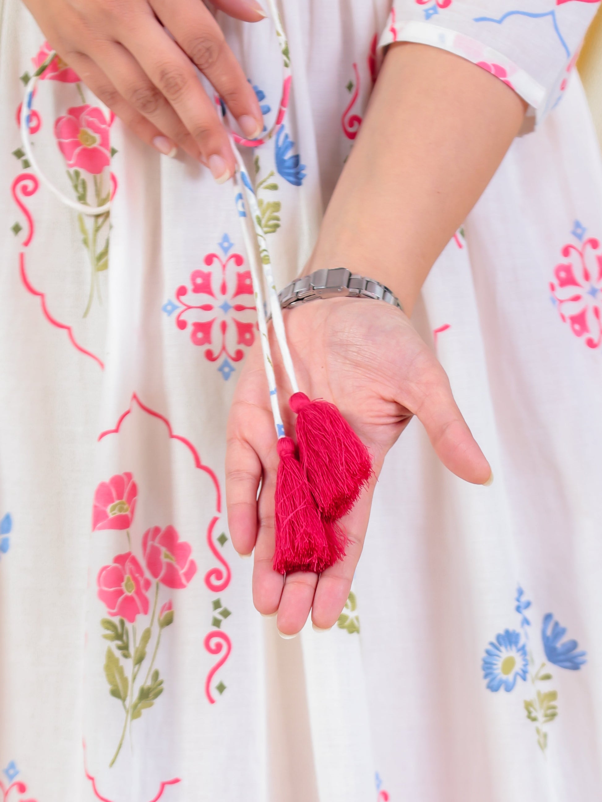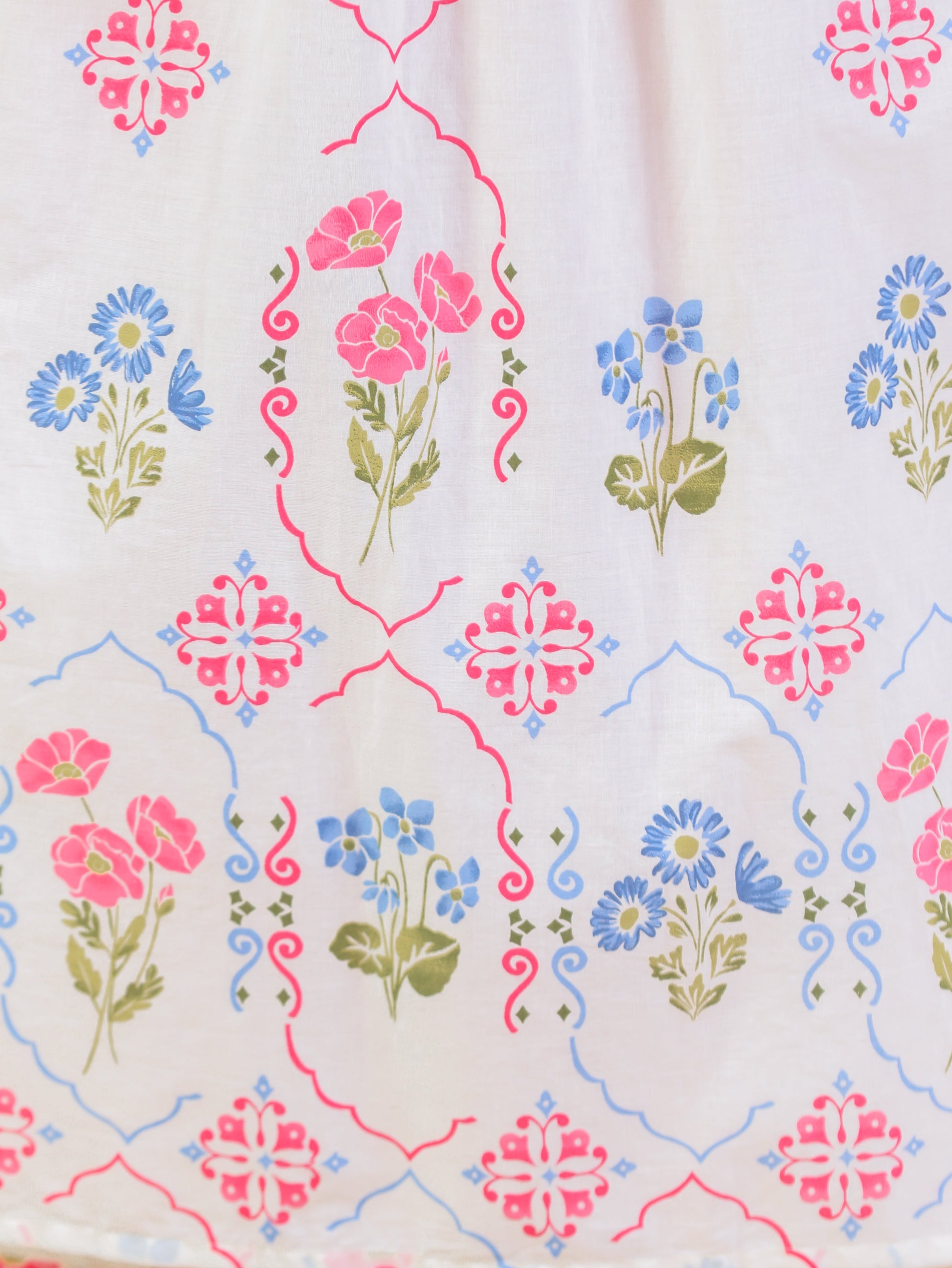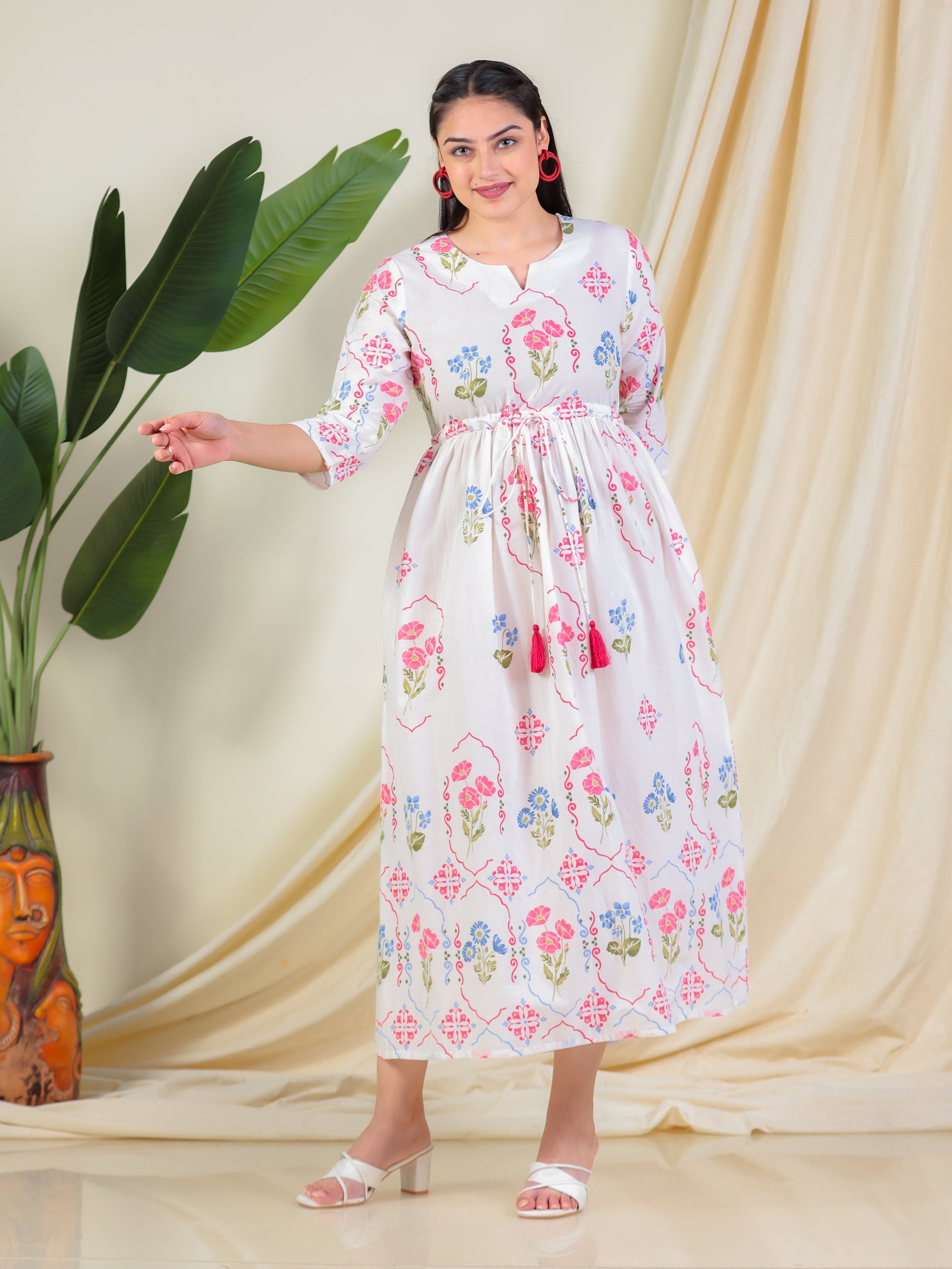Soft Cotton Geometric Anarkali Off White Dress