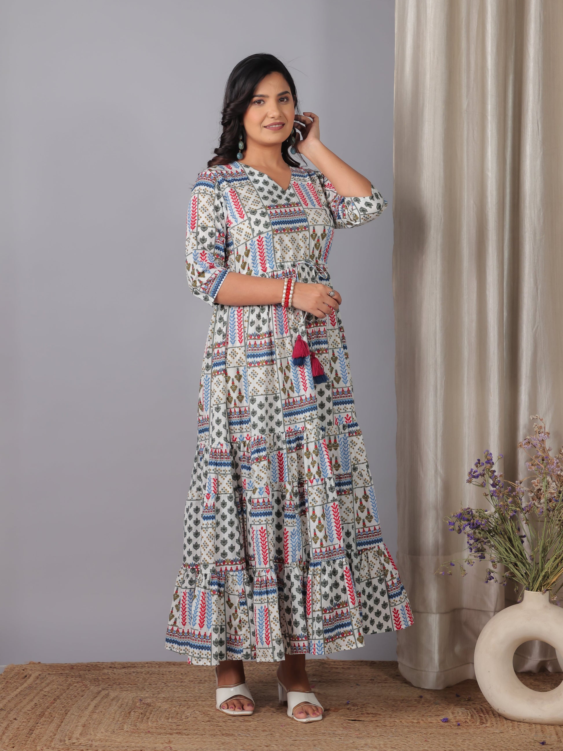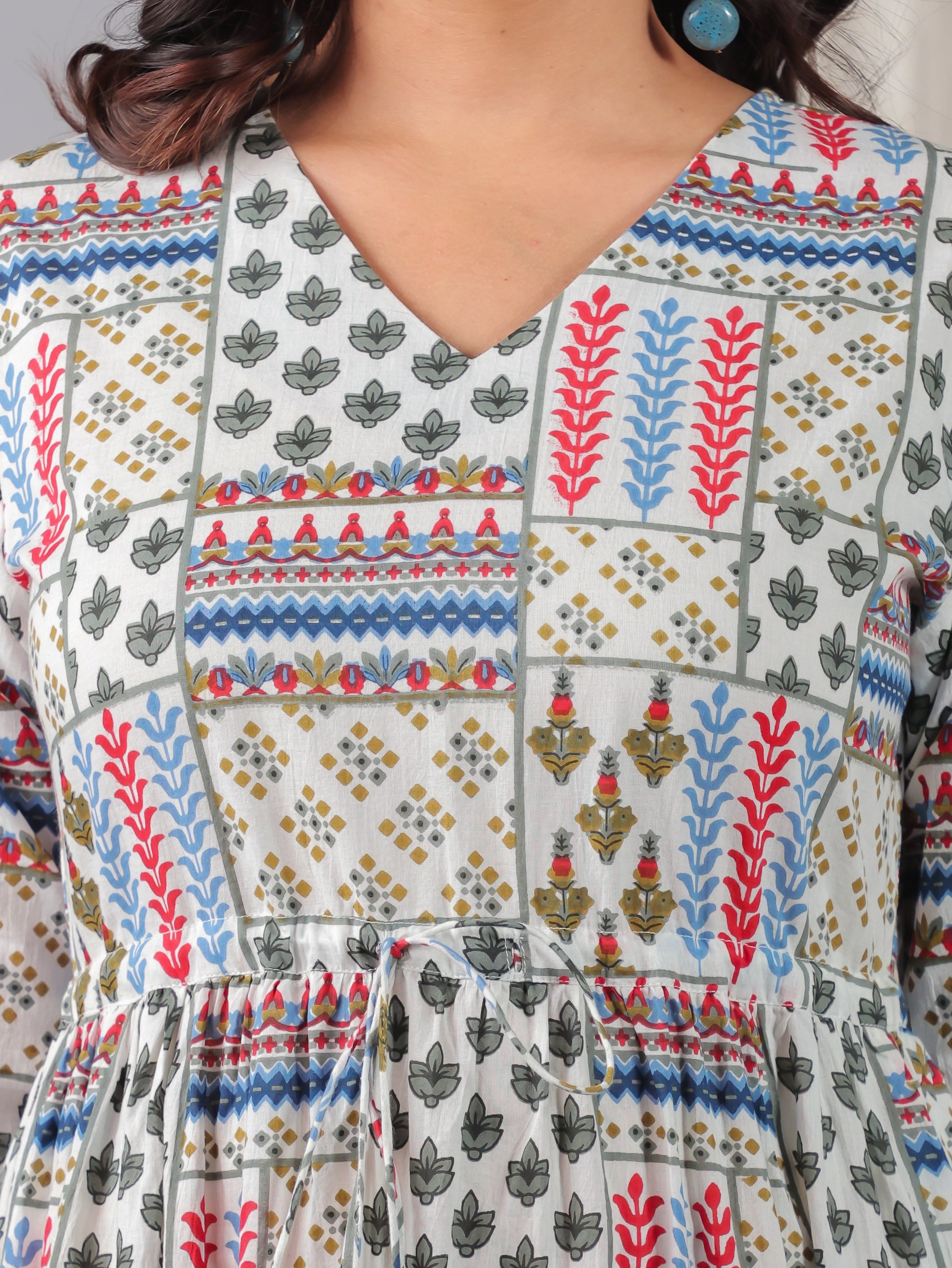 Designed for comfort and confidence, this Soft Cotton dress in Off White features a flattering A-line silhouette and unique Patchwork accents. The work detailing adds sophistication, making it perfect for coffee dates, casual evenings, or weekend brunches. Accessorise with minimal jewellery and flats for a polished finish.