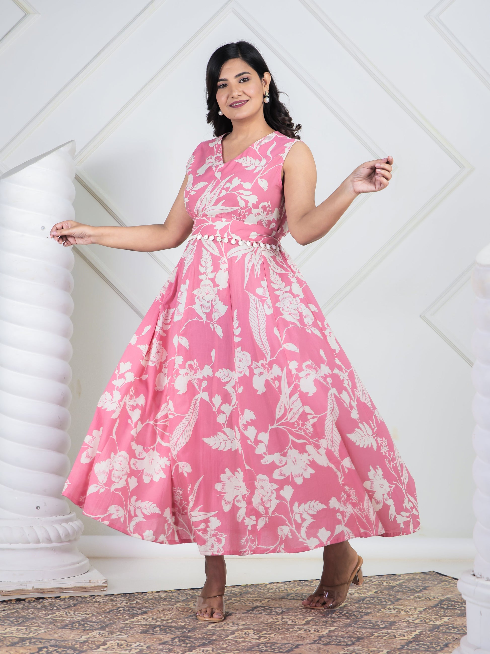 Designed for comfort and confidence, this Soft Cotton dress in Pink features a flattering Flared silhouette and unique Floral accents. The work detailing adds sophistication, making it perfect for coffee dates, casual evenings, or weekend brunches. Accessorise with minimal jewellery and flats for a polished finish.