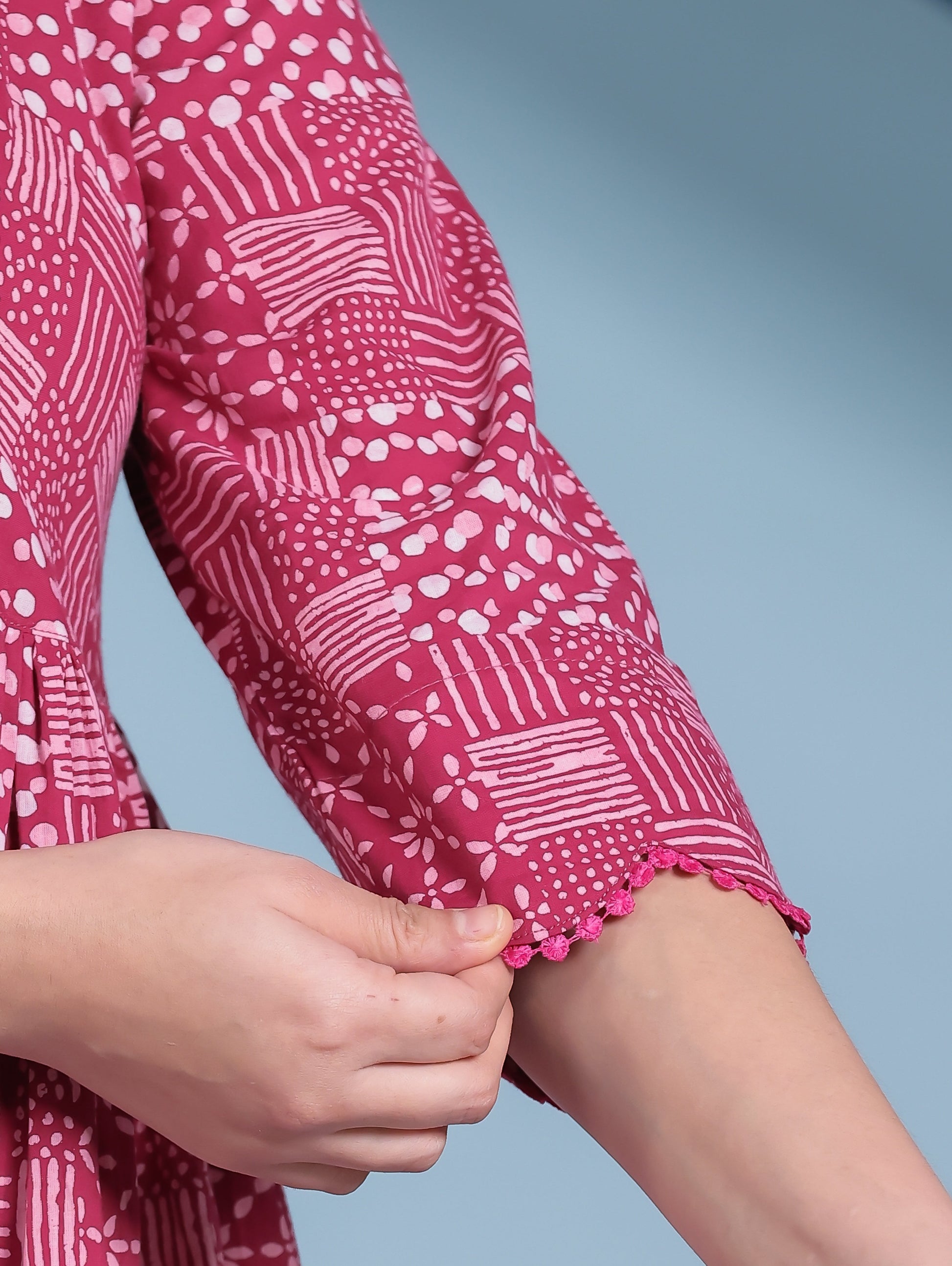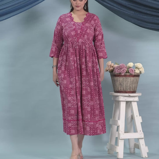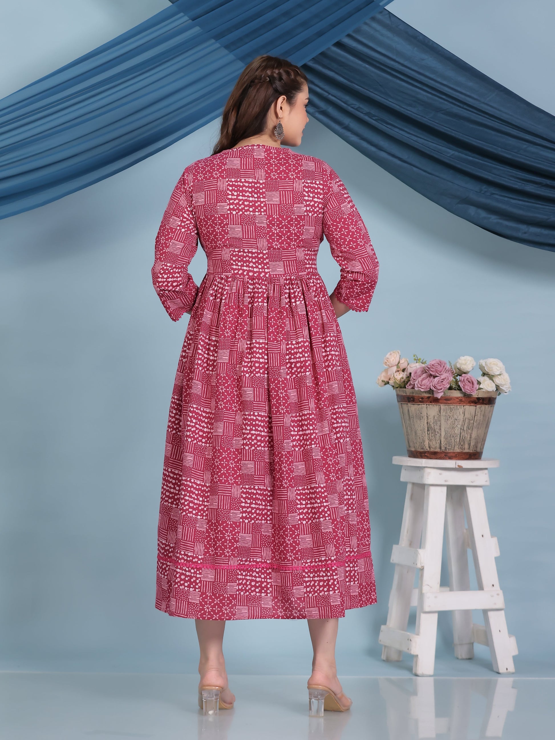 Soft Cotton Patchwork Anarkali Pink Dress