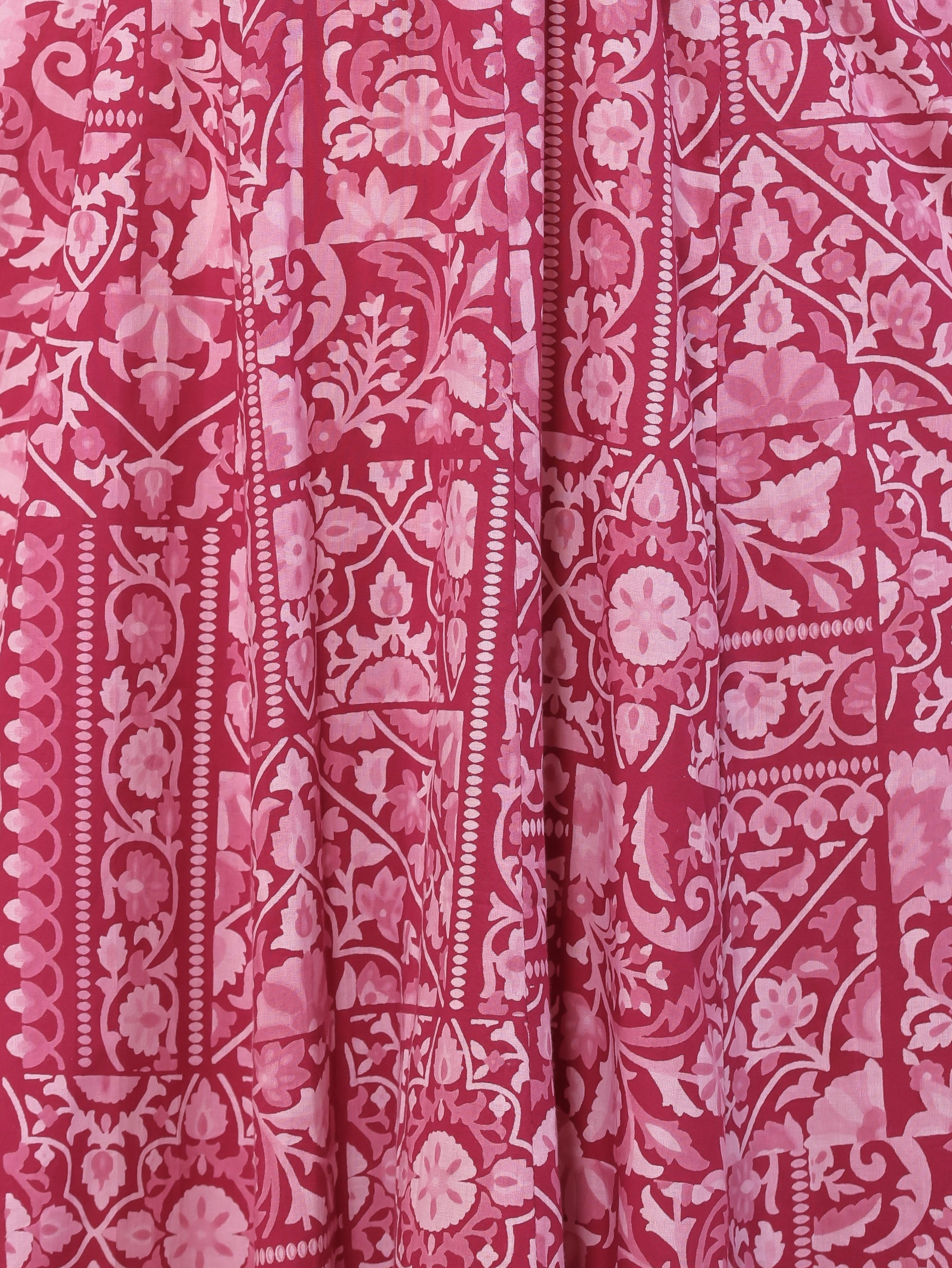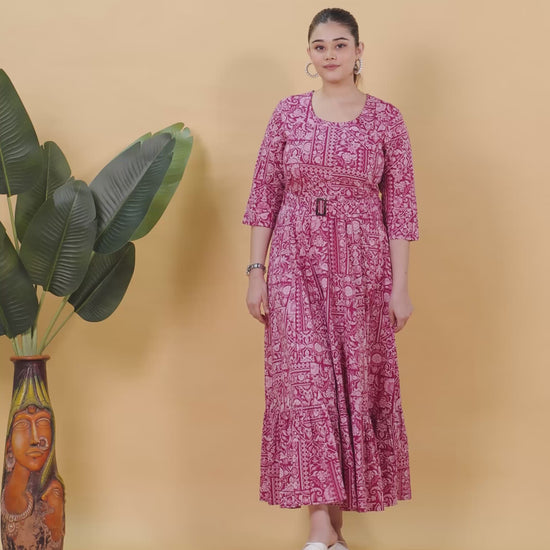 Soft Cotton Patchwork Anarkali Pink Dress (With Belt)