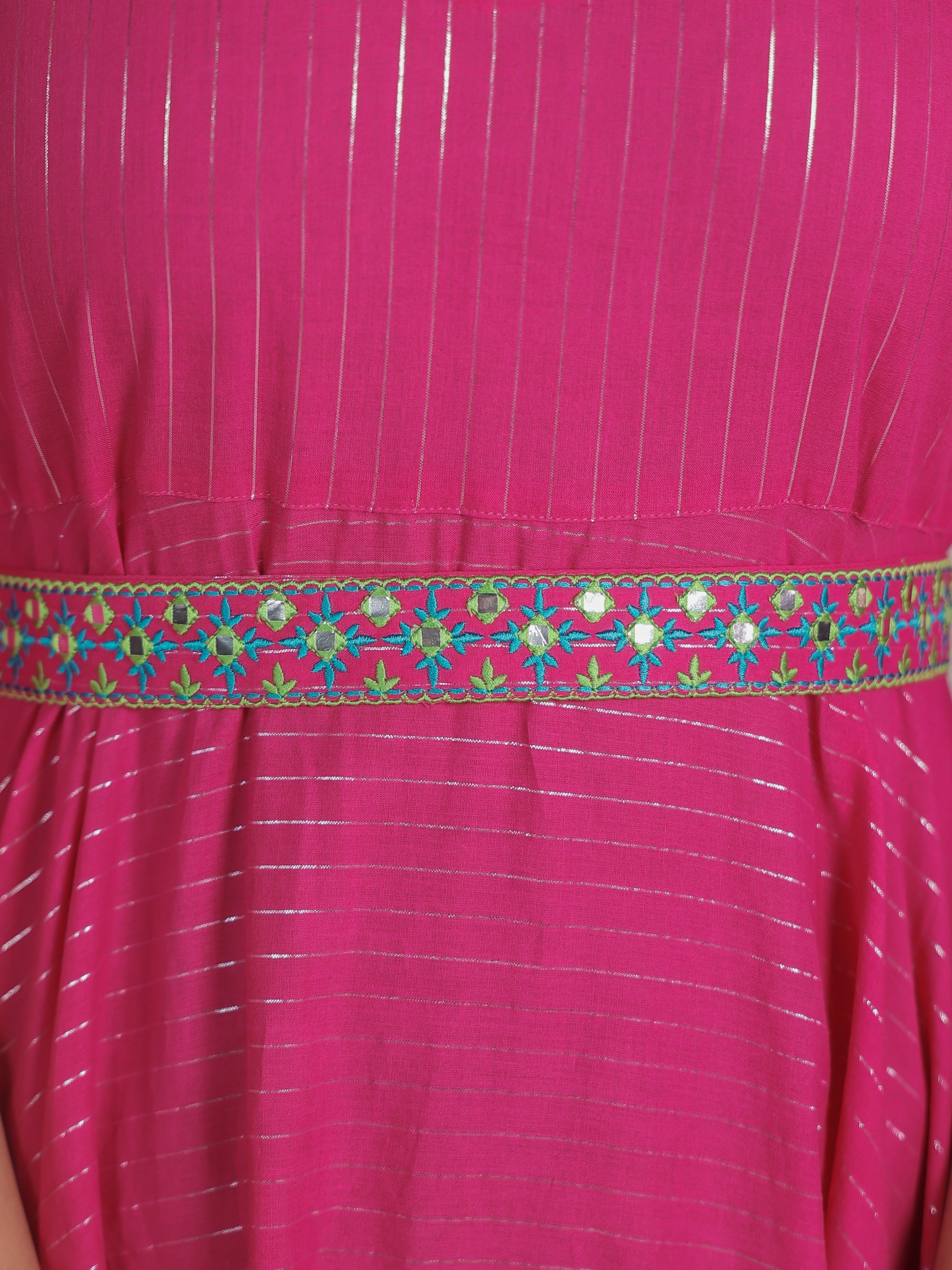 Embroidered Lurex Cotton Solid Flared Pink Dress